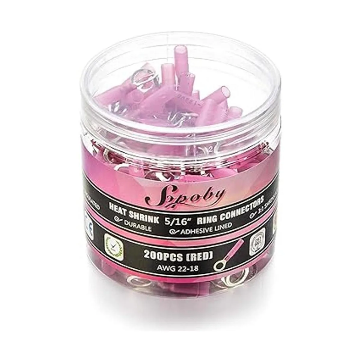 PACKAGE : 200 PCS Heat Shrink Crimp Ring Connectors for 3/8 screw. These electrical connectors will fit any wire from 22 to 18 gauge.