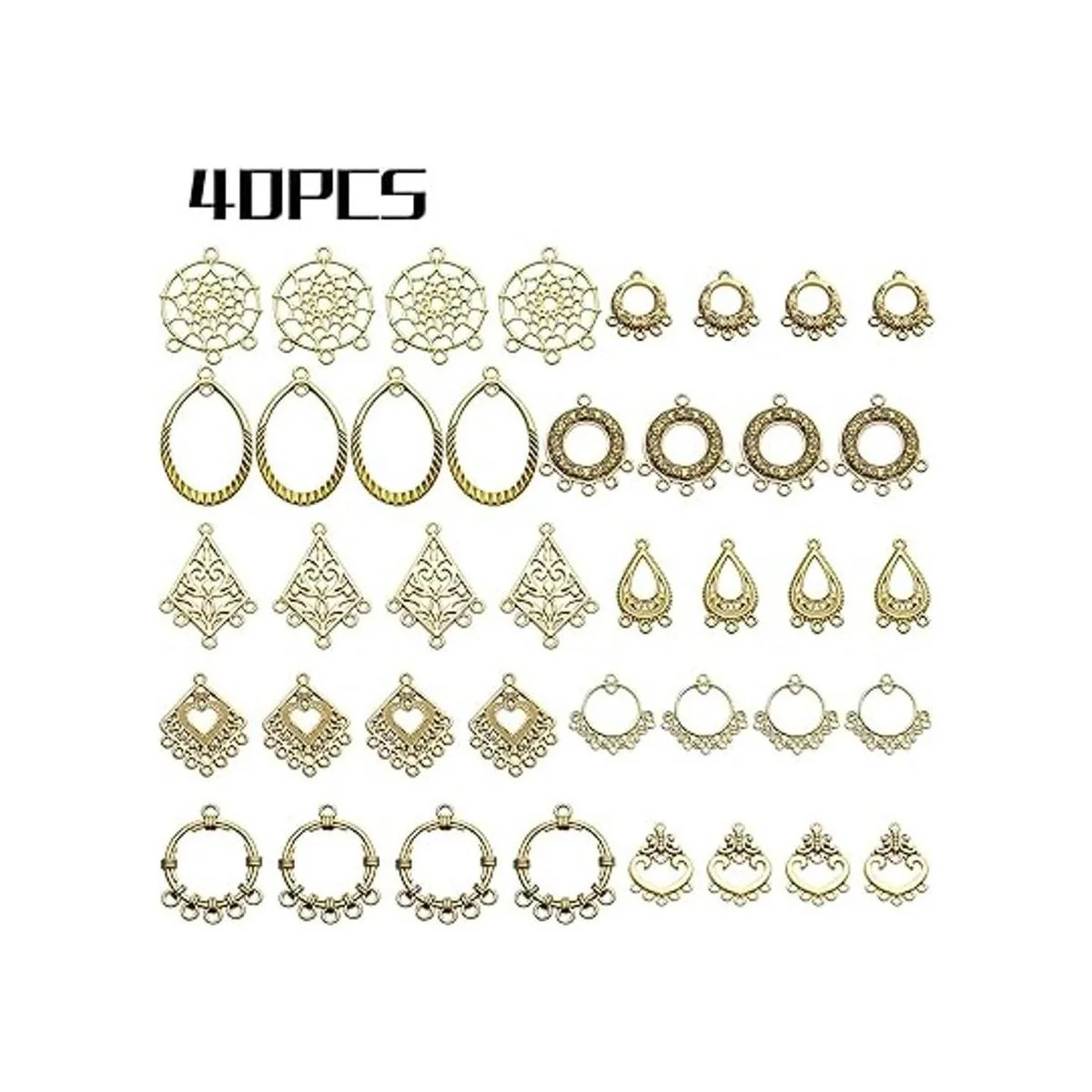 Conectores de aretes, 40 piezas de 10 estilos tibetanos para aretes, dijes de araña bohemios, adornos de metal para bricolaje, aretes colgantes, kits de fabricación de joyas, oro antiguo, Metal