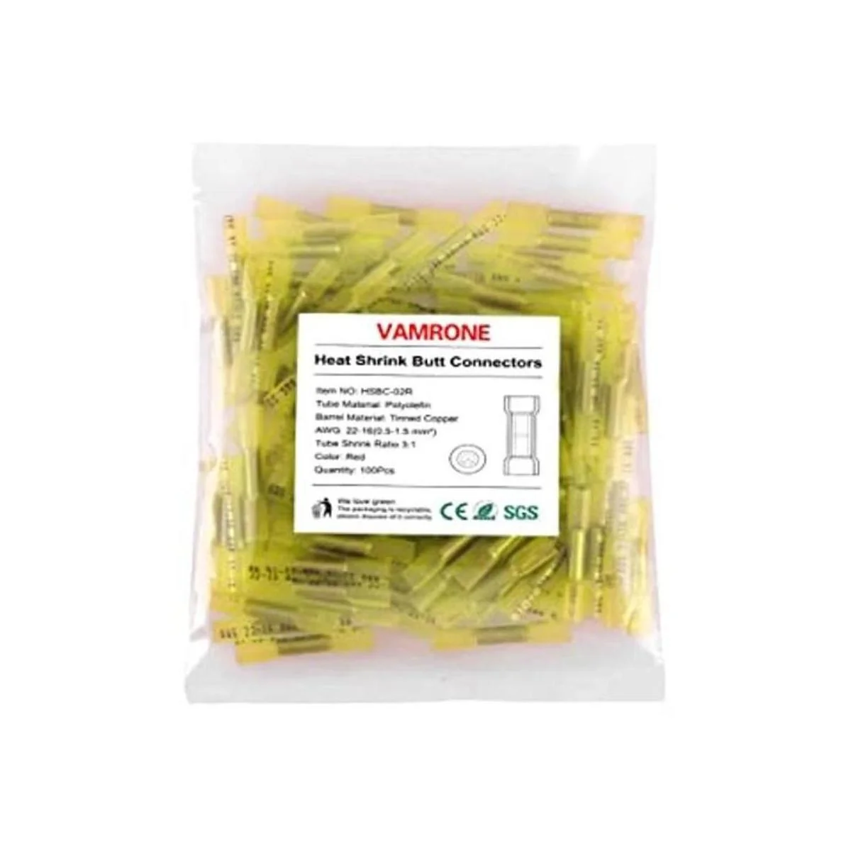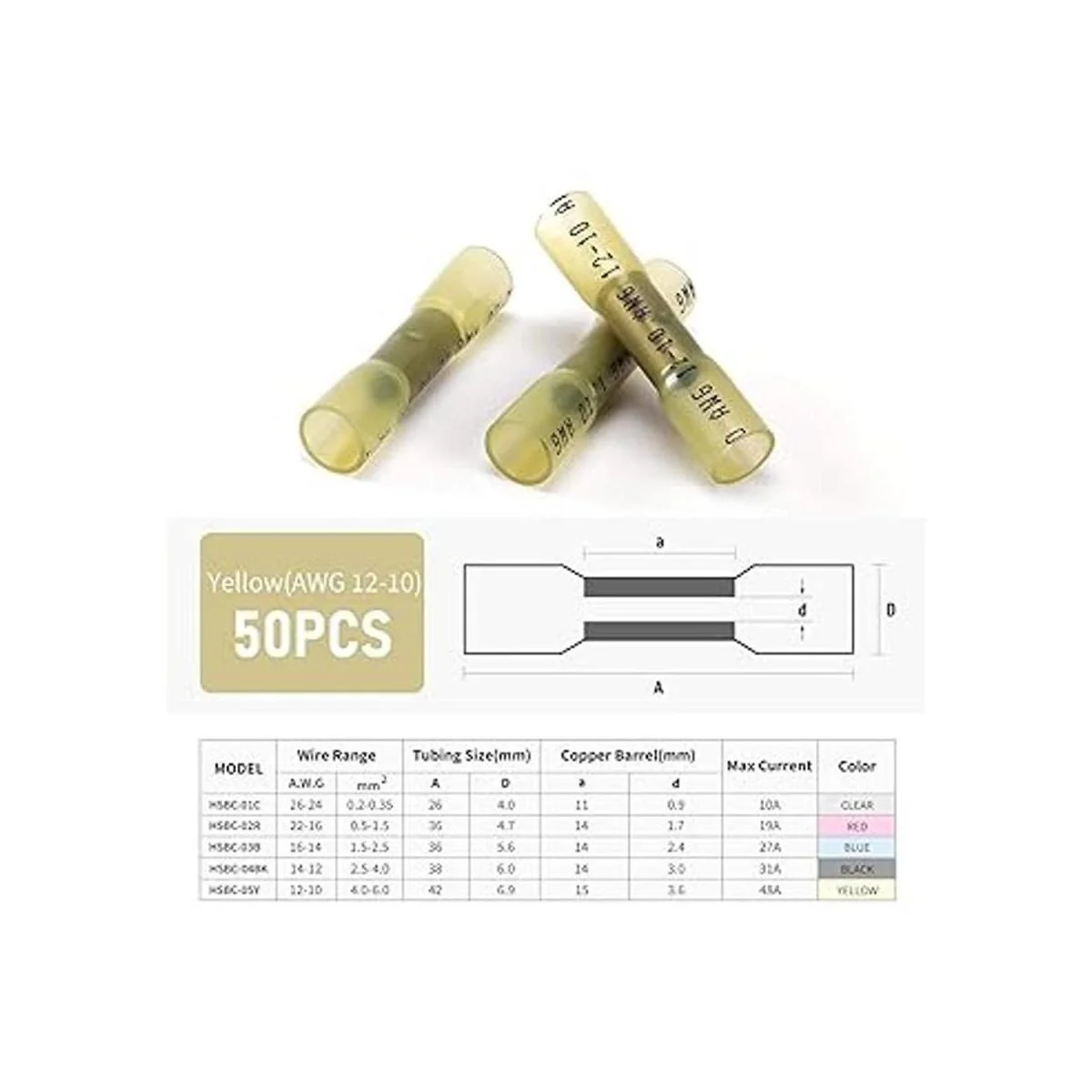 Conectores de cable termorretráctiles, 50 piezas de 1210 AWG aislados de color amarillo, impermeables, conectores de cable eléctrico, terminales de crimpado de alambre de grado marino, empalmes a tope, ideal para barcos, camiones, amarillo estéreo