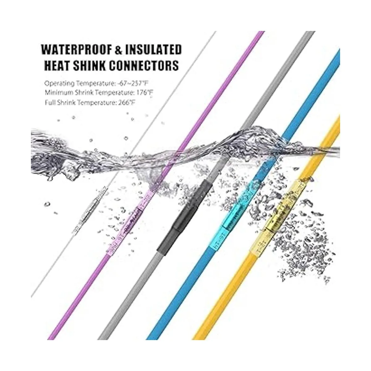 Hecho para durar: gracias al grueso cobre estañado y al diseño de barril sin costuras, garantiza un crimpado fuerte y seguro todo el tiempo sin problemas de salida. Además, el tubo termorretráctil de poliolefina proporciona la alta resistencia a la tracción y resistencia a los daños mecánicos, por lo que no hay preocupación de masticar ratas o problemas de daños físicos similares. Cuando se calienta con una de calor, el adhesivo que se derrite en el interior crea un sello impermeable y aislado, evitando fugas eléctricas y corrosión
