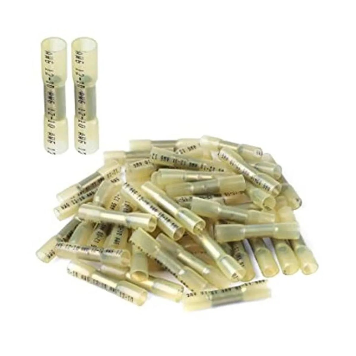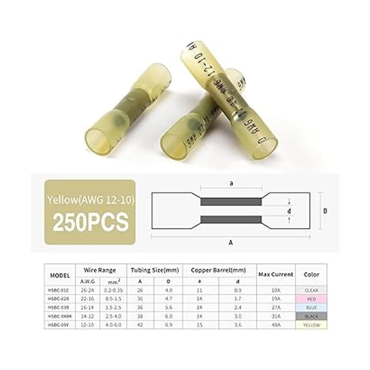 Conectores de extremo termorretráctiles, 250 piezas de 1210 AWG aislados de color amarillo, conectores de cable eléctrico, impermeables, terminales de crimpado de alambre de grado marino automotriz, ideal para barcos, camiones, estéreo, color amarillo