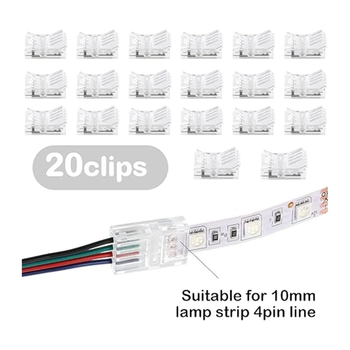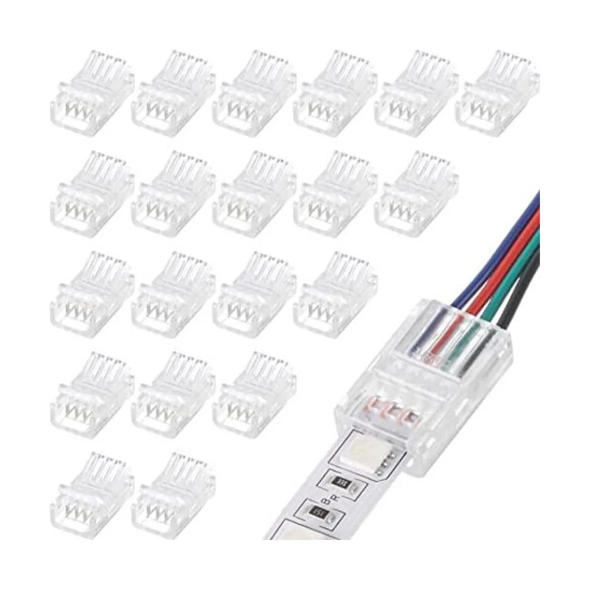 Conectores de tira de luz LED RGB, 20 conectores adaptadores LED impermeables, conectores de tira de luz LED sin soldadura para tira de luz sin cable, conector de iluminación de pista sin cables, 5 V, 12 V, 24 V 4 pines, 0.394 in
