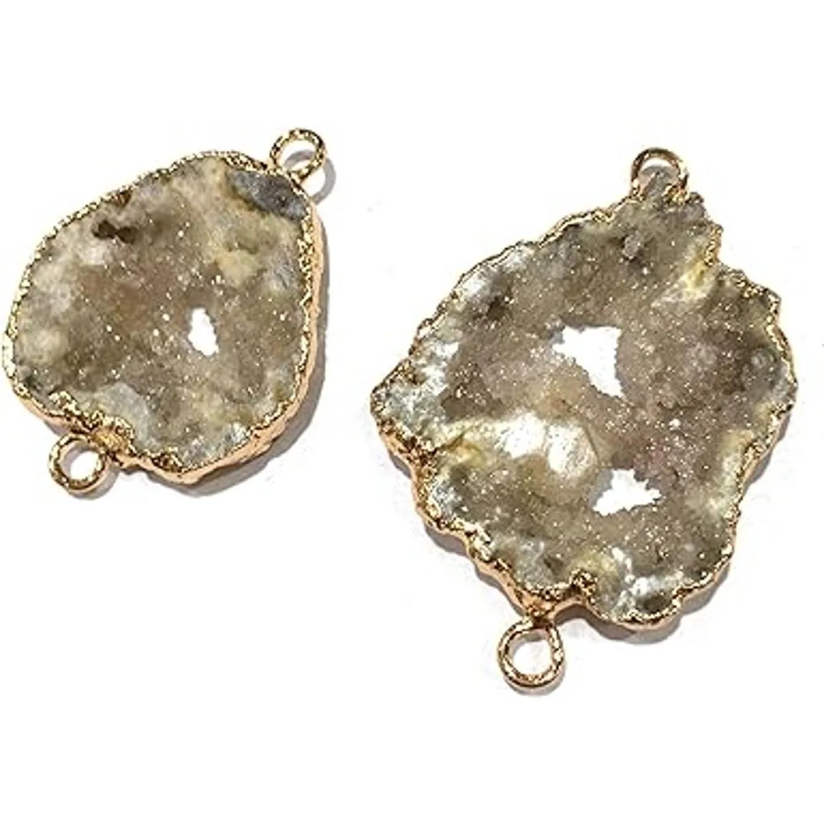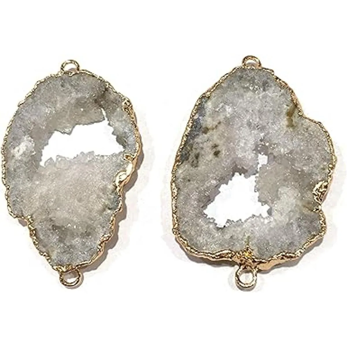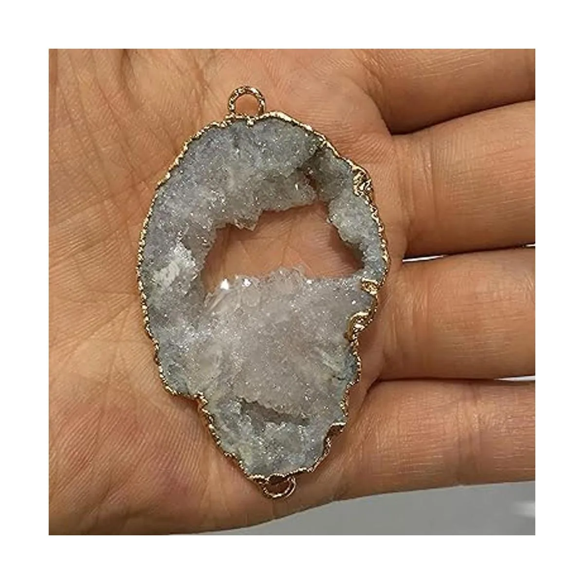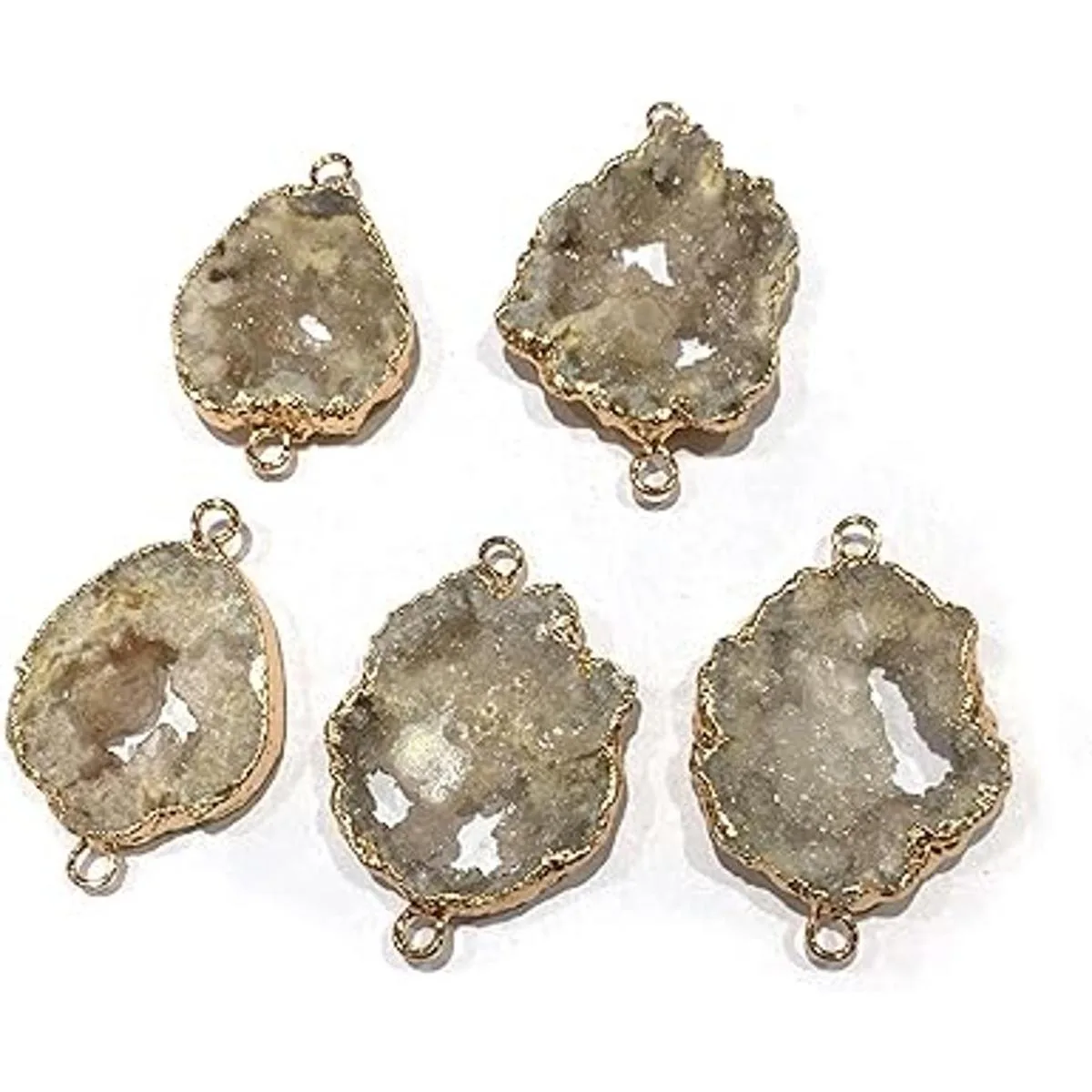 Conectores Druzy de cristal de ágata natural con cristales de perlas y conectores de joyería para hacer collares o joyas 5 unidades