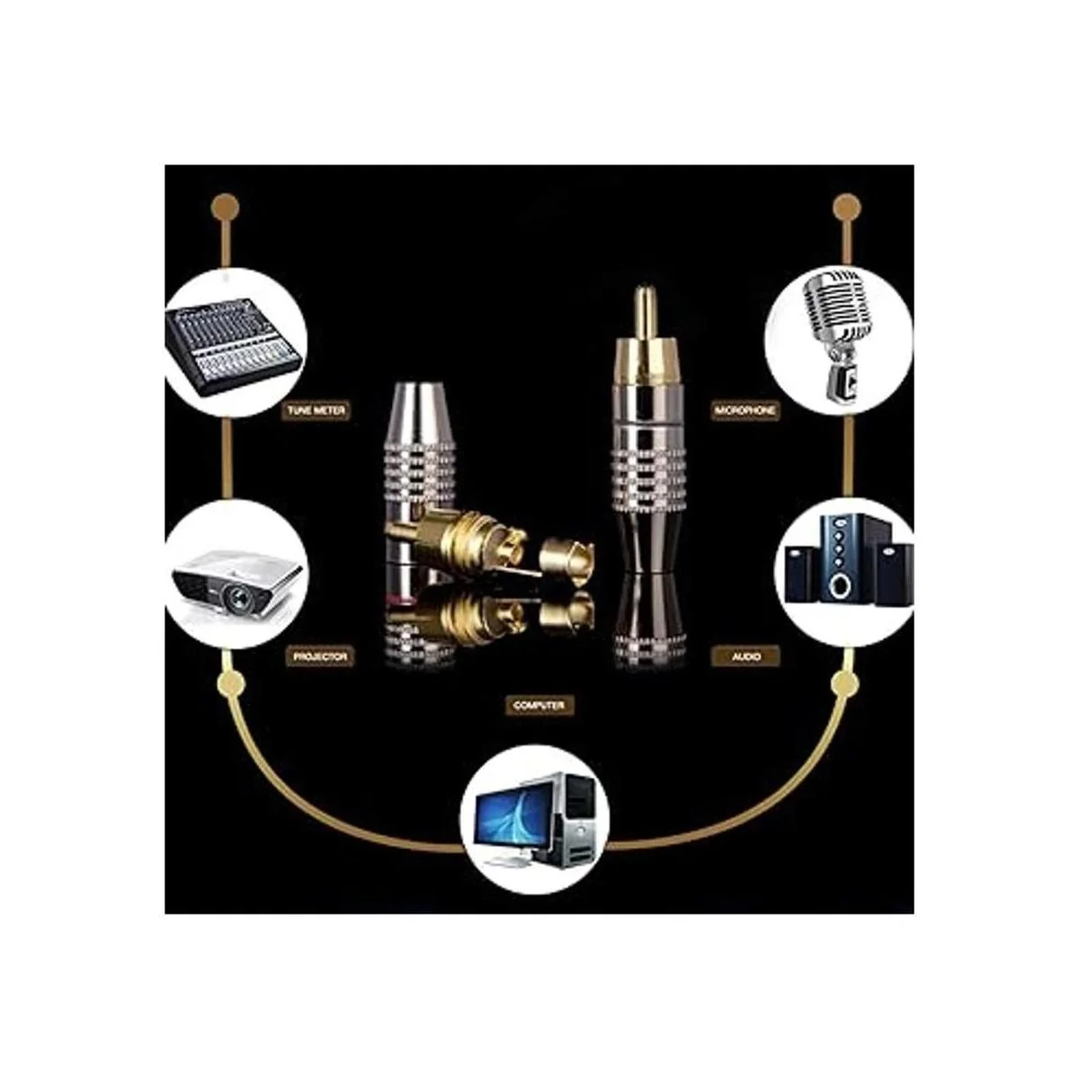 Conectores RCA para cable coaxial, adaptador de audio, conector dorado, sin soldadura, kit de cable de vídeo sin soldadura, TV CCTV paquete de 12