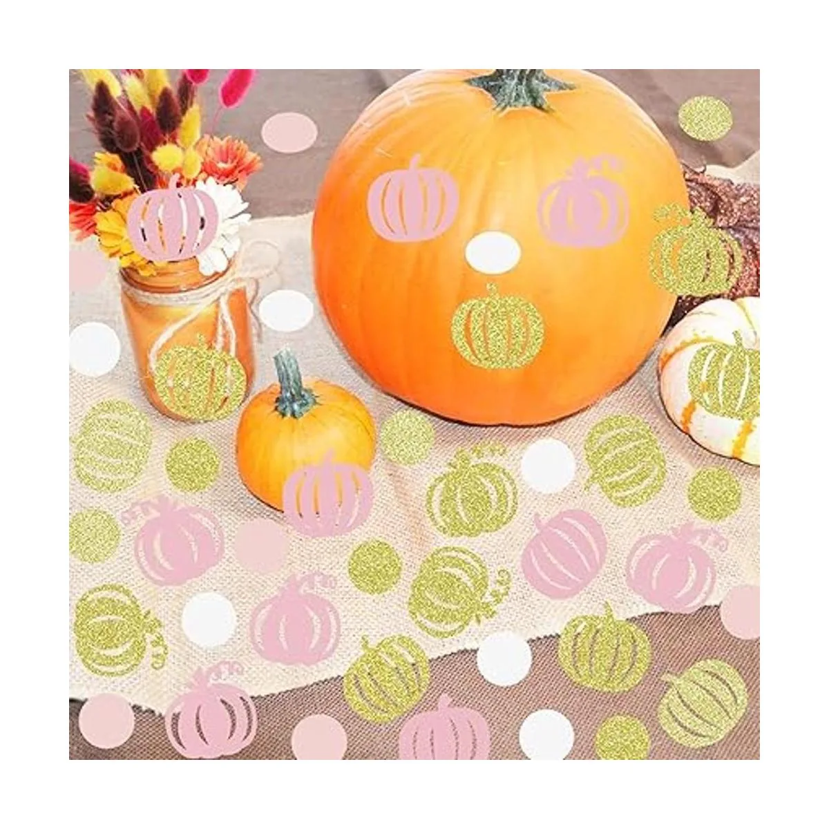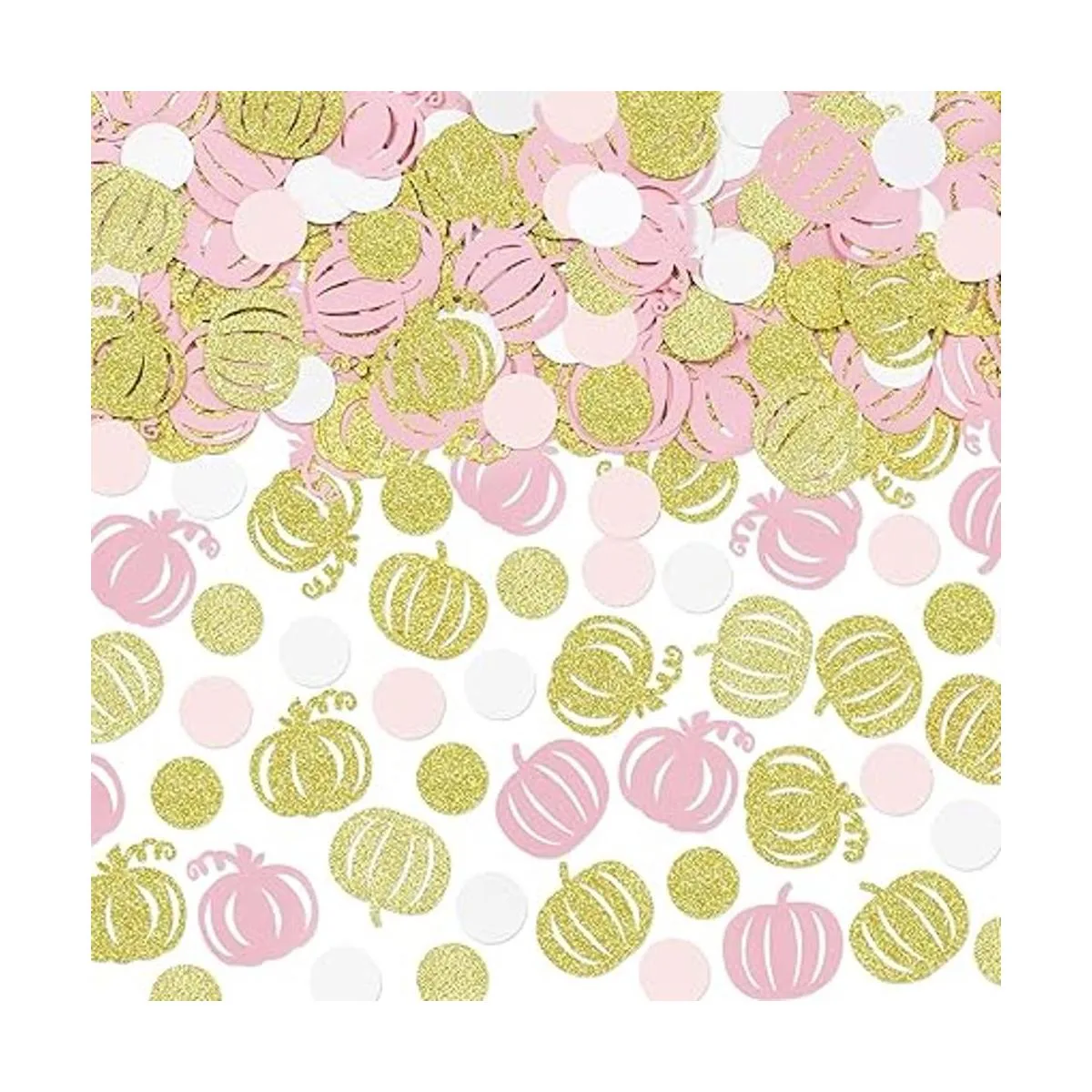Confeti de calabaza y confeti de oro rosa con puntos circulares y confeti de calabaza pequeña para baby shower, decoración de mesa de cumpleaños