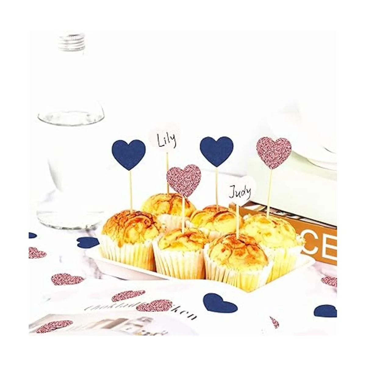 El confeti azul marino rosa oro rosa se puede utilizar como decoración para cupcakes o decoración del soporte de exhibición para tartas. Solo tienes que añadir el confetis alrededor de la mesa también es bueno. Deja que tu mesa se vea más vívida.
