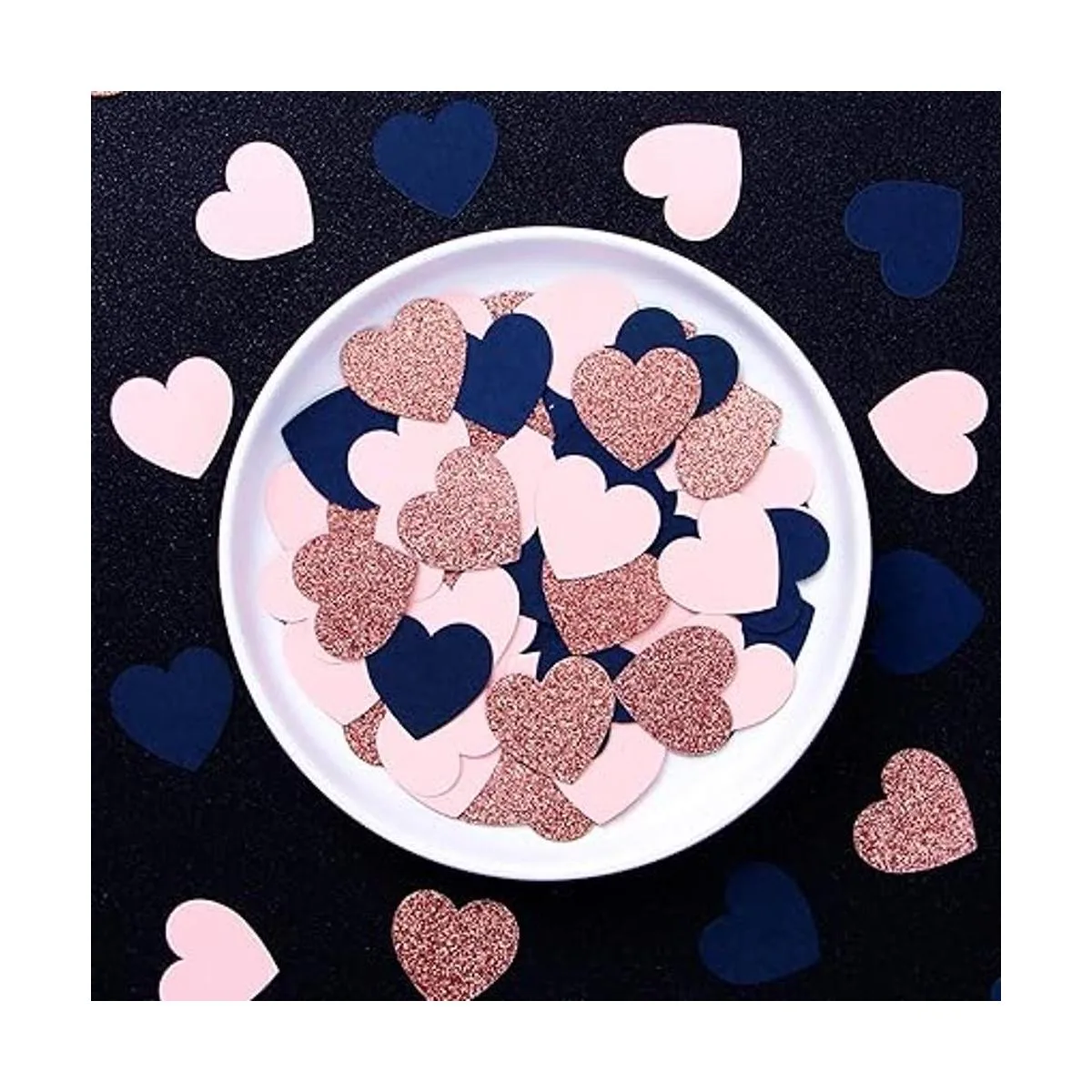 Confeti de corazón rosa y dorado azul marino, 300 piezas de decoración del día de San Valentín, confeti de papel con purpurina, revelación de género, graduaciones, boda, despedida de soltera, compromiso, fiesta de cumpleaños, decoración de mesa de sorpresa duradera