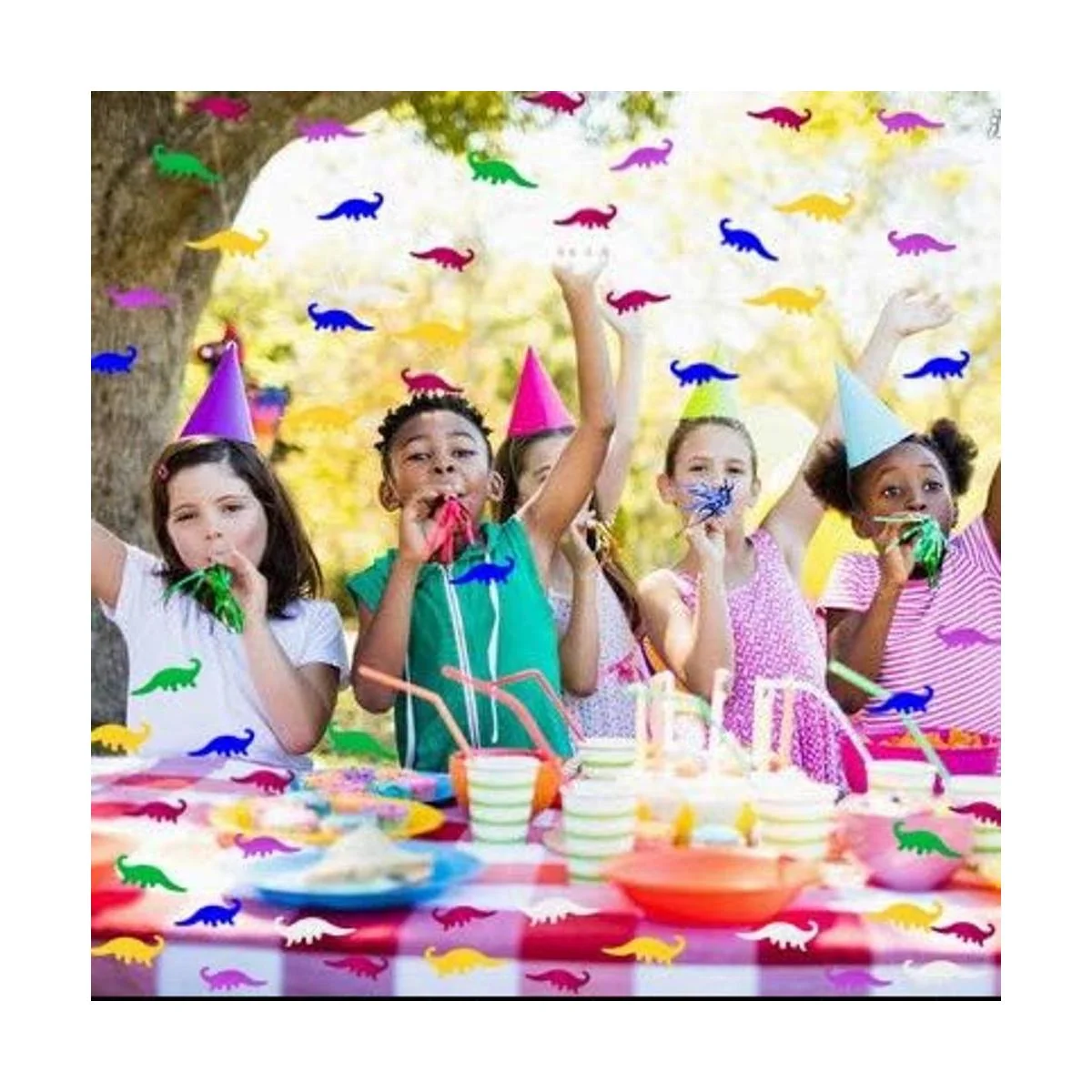 Confeti de dinosaurio metálico dispersión de papel para Dino temático fiesta de cumpleaños celebraciones decoración de mesa artes y manualidades DIY niños pequeños, niños, niños, fiesta de niña Favor 1.5 onzas 1800 piezas