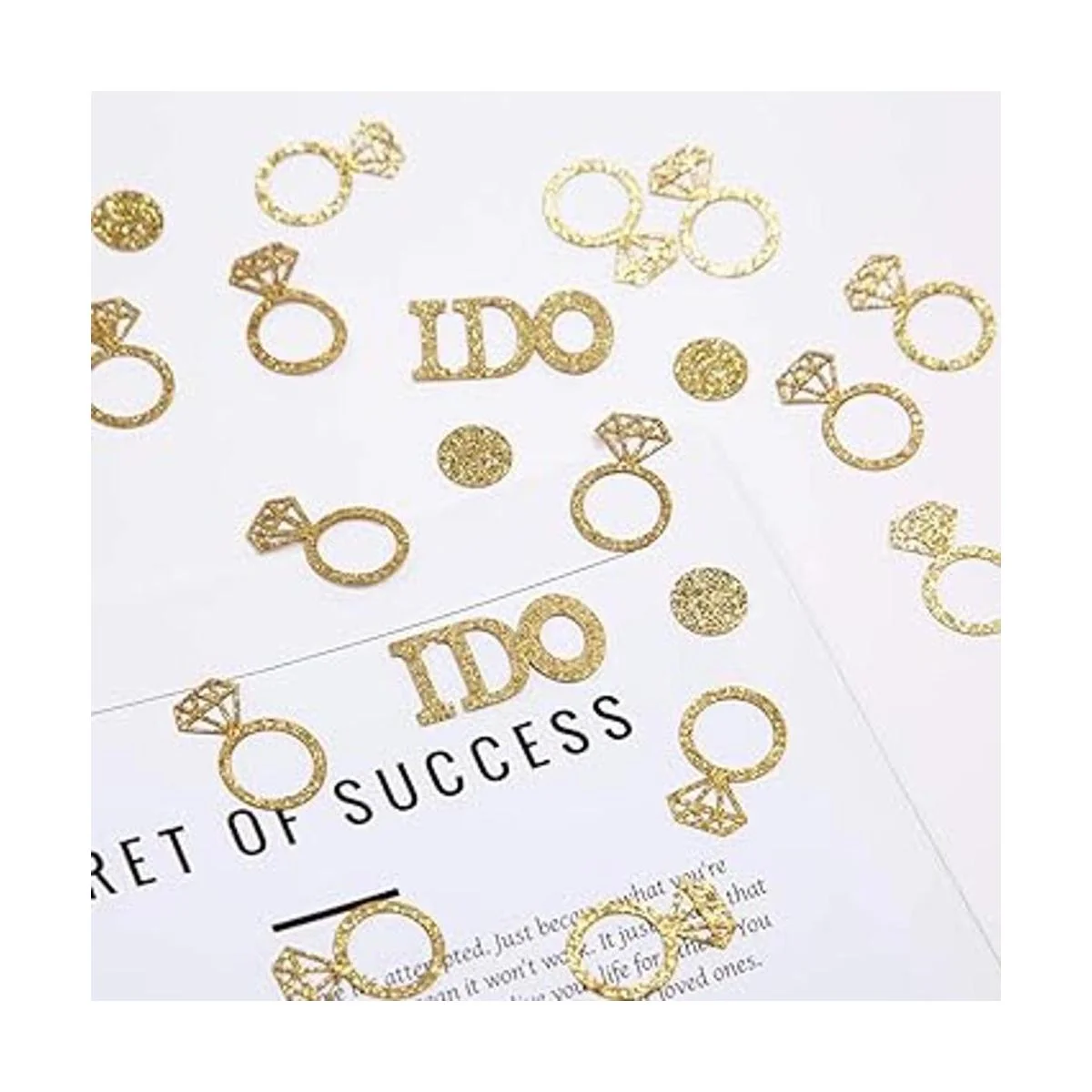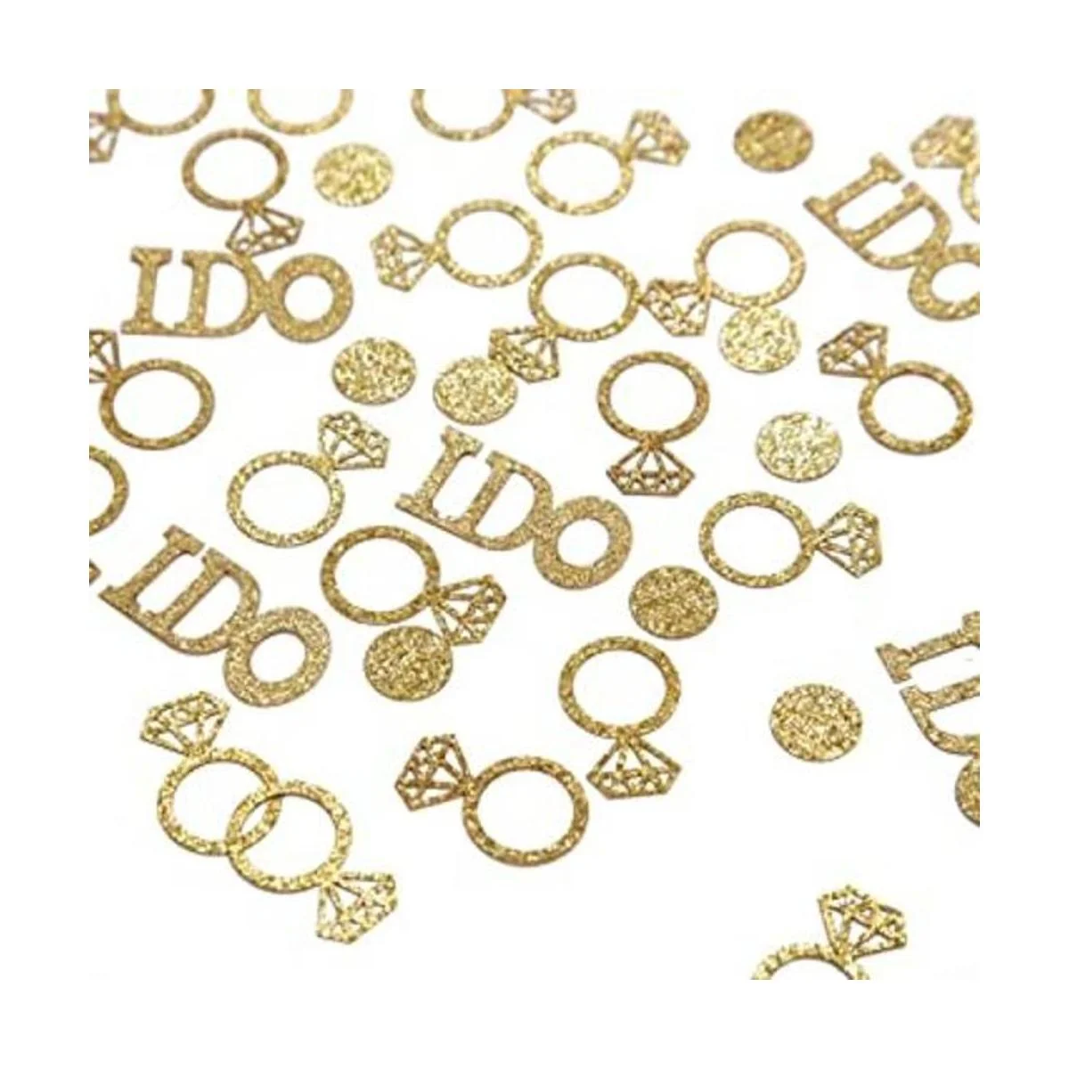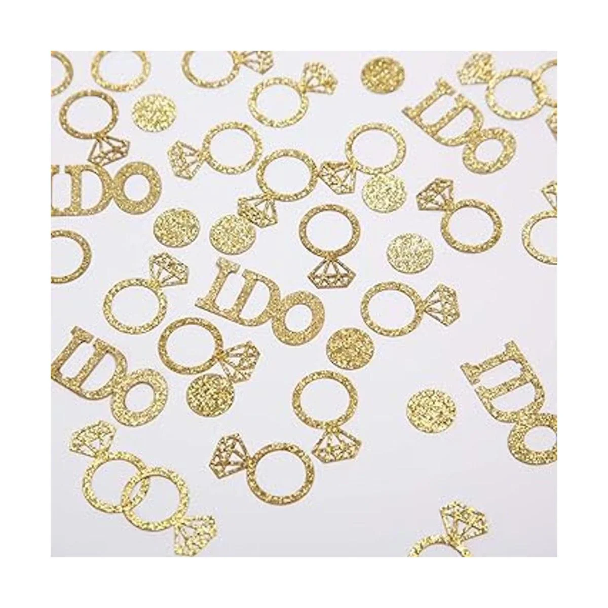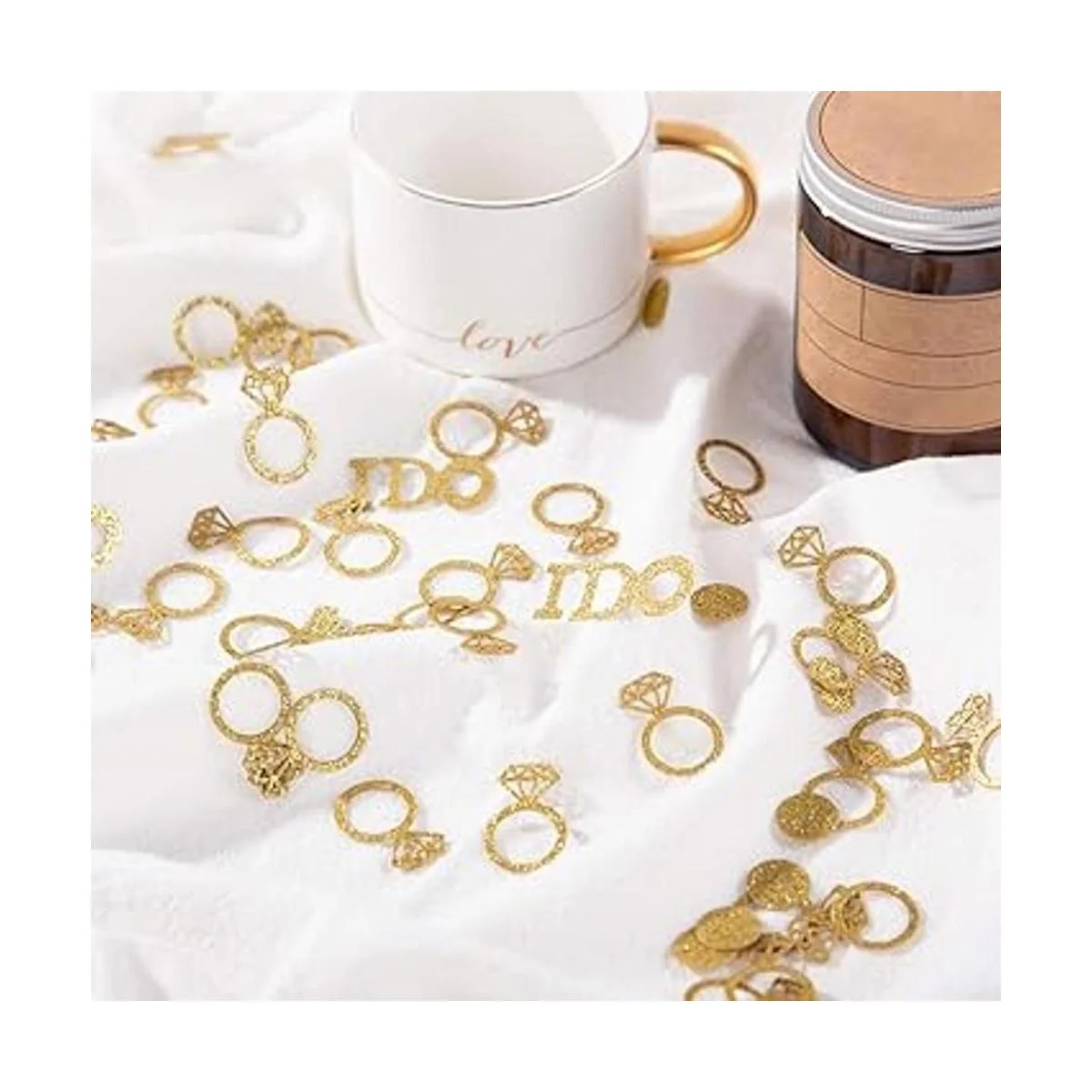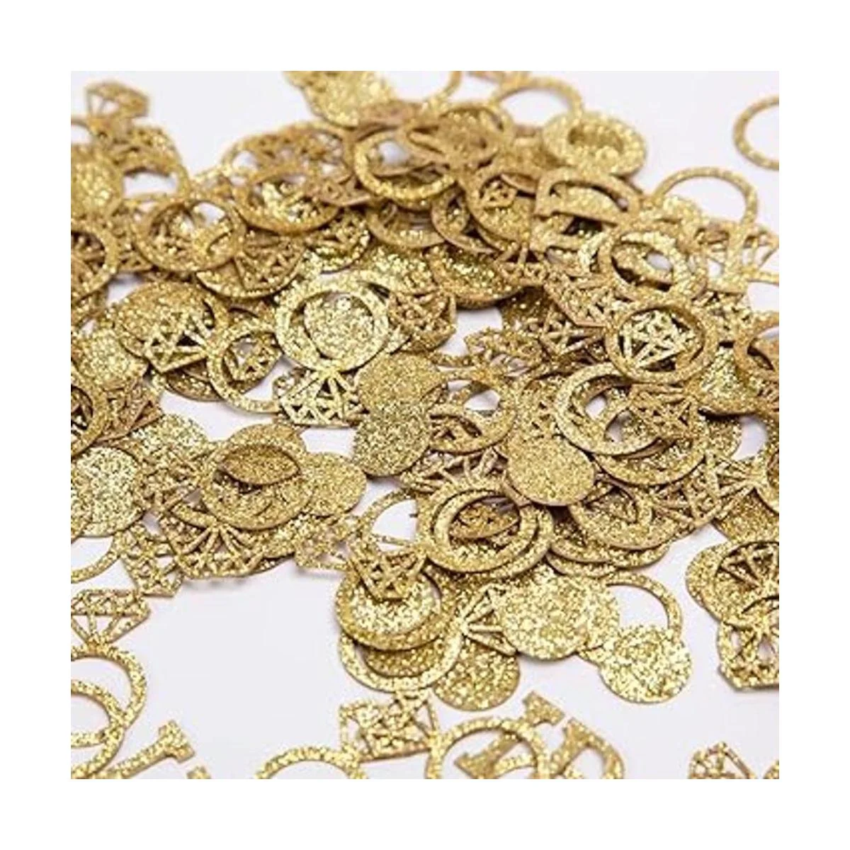 Confeti de mesa de boda dorado, confeti de anillo de diamante de papel con purpurina, mesa de fiesta de compromiso, decoración de despedida de soltera