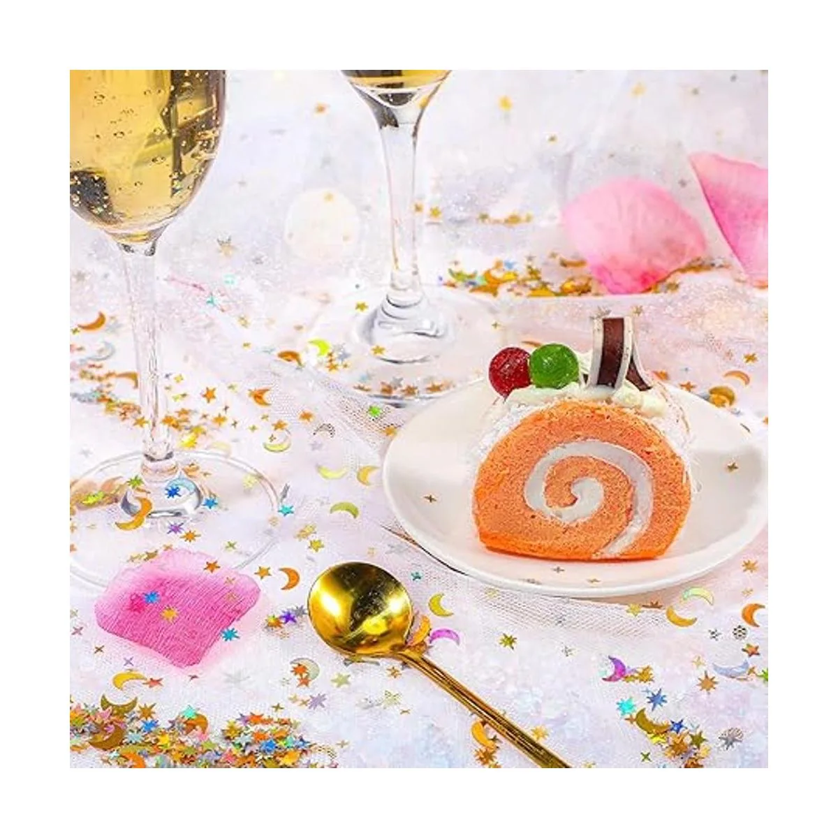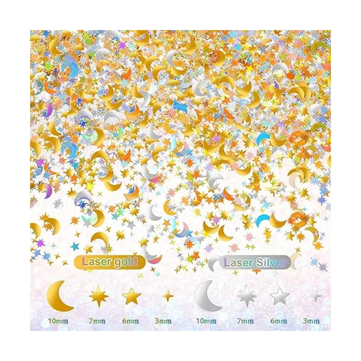 Amplia gama de aplicaciones: estos encantadores confeti de luna y estrella se pueden aplicar para decoraciones diarias en tu casa, pueden reflejar diferentes brillos bajo la acción de la luz, haciendo que tu boda y fiesta sean más llamativas