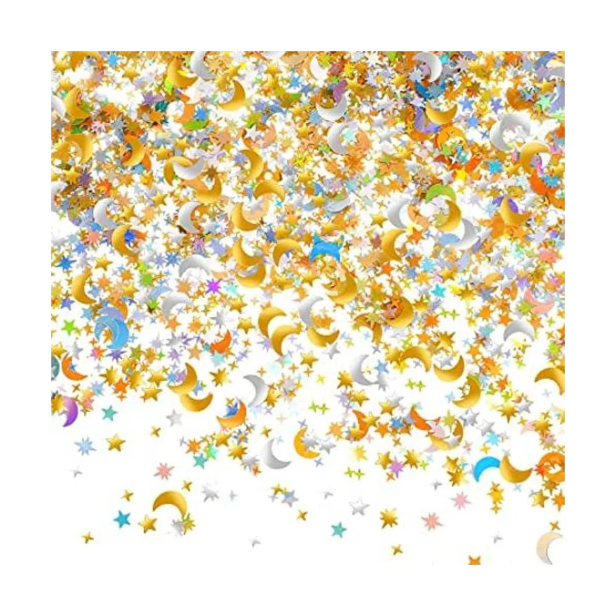 Contenido del paquete: cada paquete de confeti de mesa colorido de estrella y luna pesa 2.12 oz, aprox. 2300 piezas en total y bien empaquetadas, una gran cantidad para satisfacer las demandas de decoración de ti y tu familia