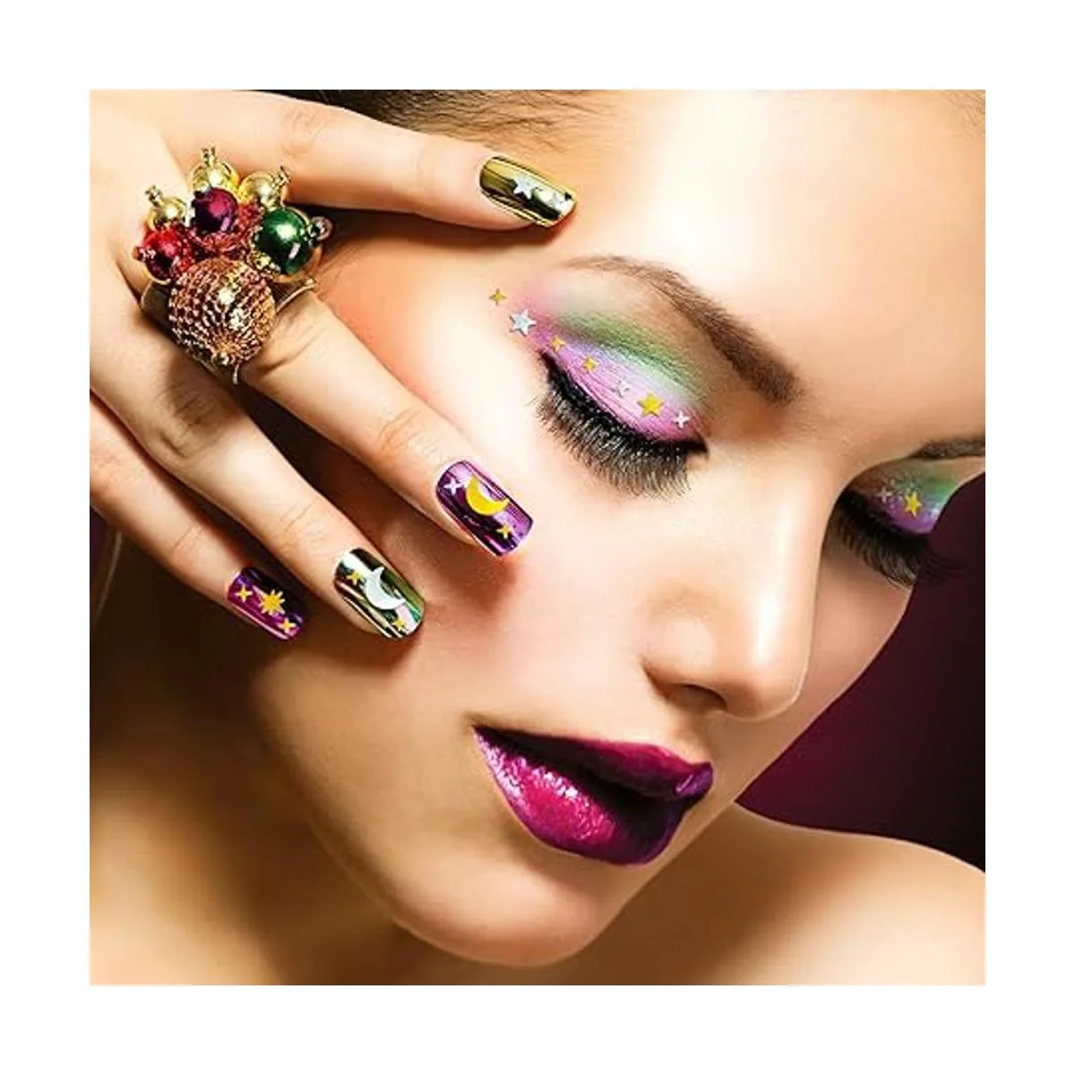Diseño exquisito: estas lentejuelas de estrella y luna se componen de forma de estrella y luna, tienen una superficie lisa, brillante y luminosa en color, brillante bajo la luz, con aspecto atractivo, lo suficientemente llamativo