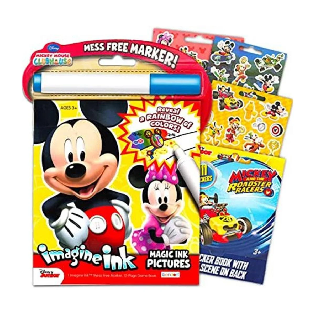 El juego incluye Mickey Mouse Clubhouse en una imagen 16page libro, 1 imaginar sin problemas, y un Mickey Mouse marcador de tinta con más de 40 pegatinas Disney.