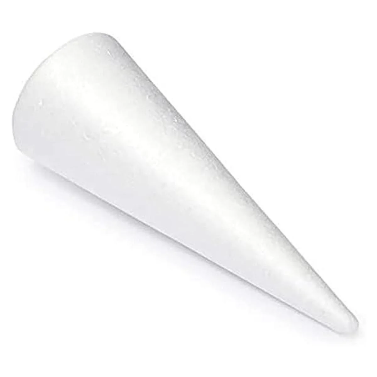 Dimensiones: cada cono de espuma blanca para manualidades viene en 5 tamaños que miden entre 2.1 x 2.1 x 4.3 pulgadas a 4.5 x 4.5 x 11.9 pulgadas de alto; se puede lijar y cortar fácilmente a tu tamaño y forma preferidos