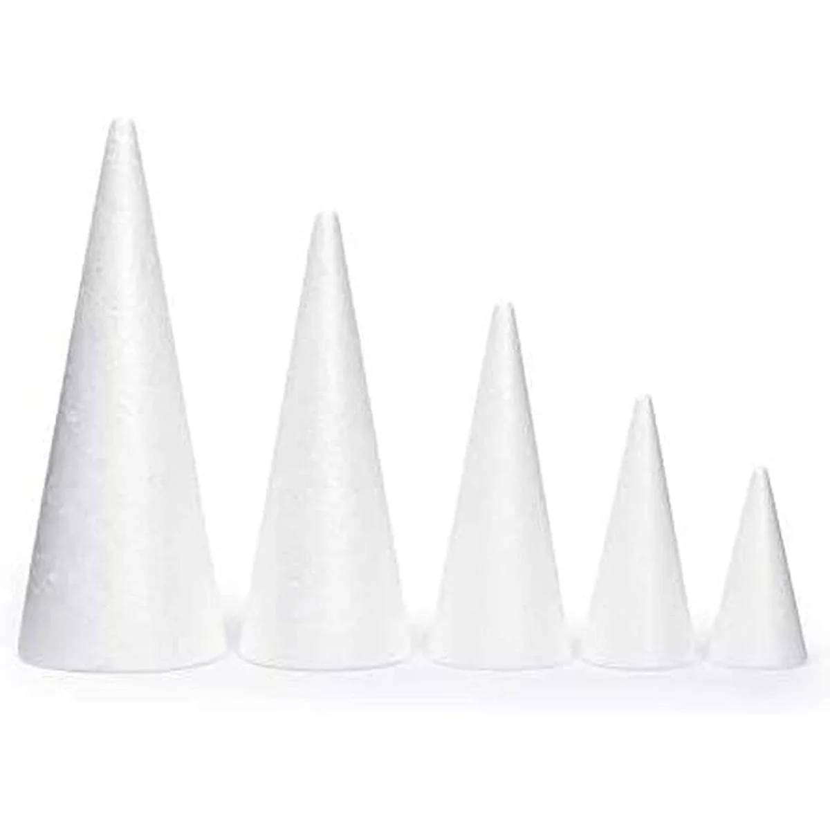 Conos de espuma blanca para manualidades, 5 tamaños surtidos 24.5 pulgadas, paquete de 18