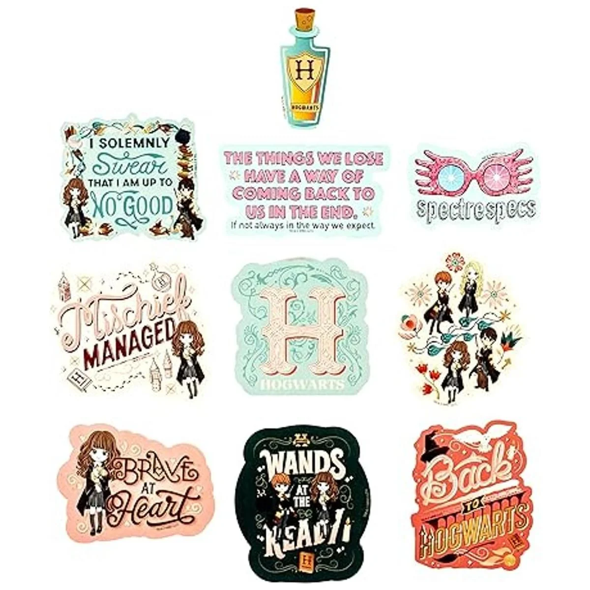 Gran regalo: los fans de Harry Potter de todas las edades aman las calcomanías. Con 50 calcomanías únicas en cada paquete que van en tamaño de 2 a 3.5 pulgadas, puedes añadir el toque perfecto de Harry Potter a lo que tu corazón de mago desee.