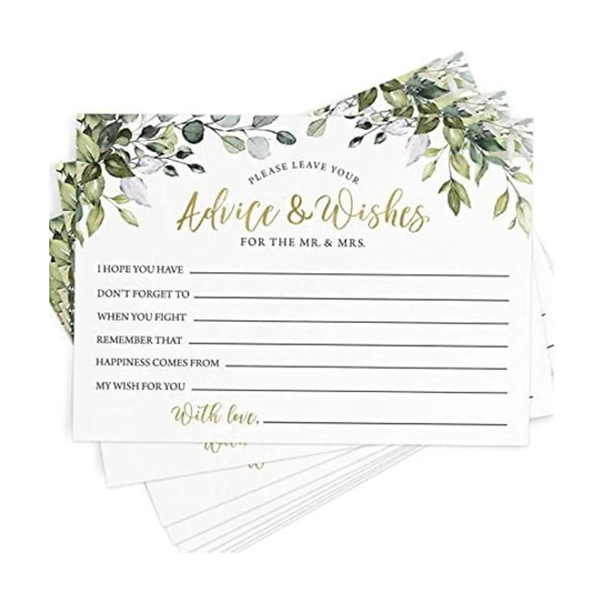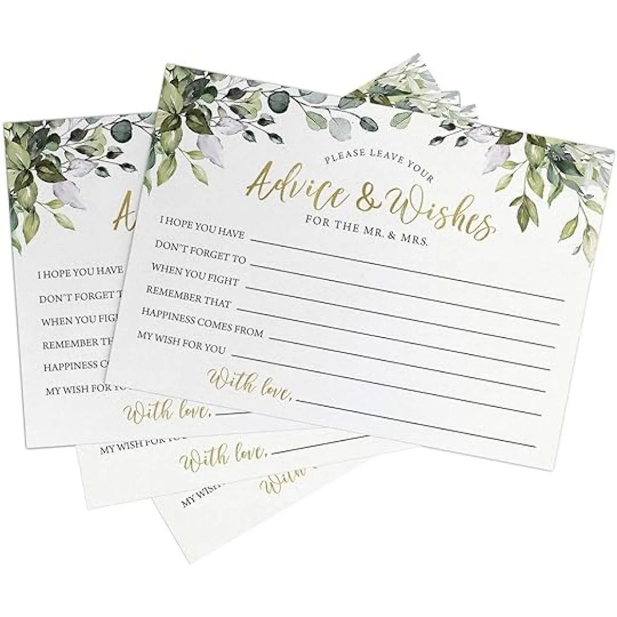 Consejos y deseos, 50 tarjetas, tarjetas de consejos de boda de eucalipto vegetal, actividad de despedida de soltera, alternativa al libro de visitas