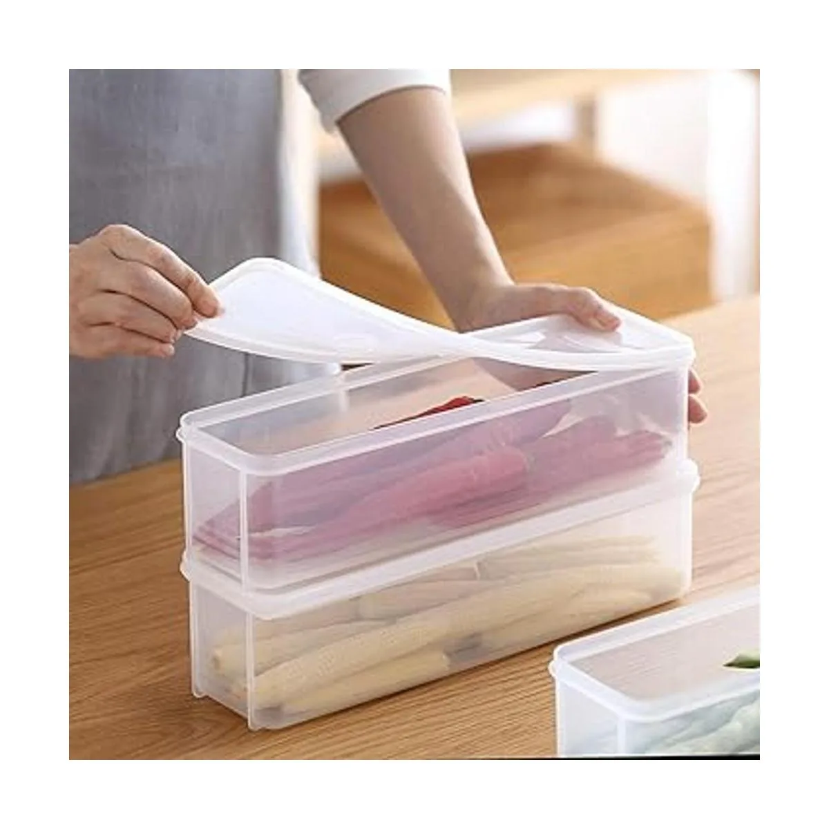 La caja de plástico es buena para almacenar alimentos como fideos, carne, huevos, frutas, frijoles, galletas, harina, especias y otros artículos esenciales de cocina