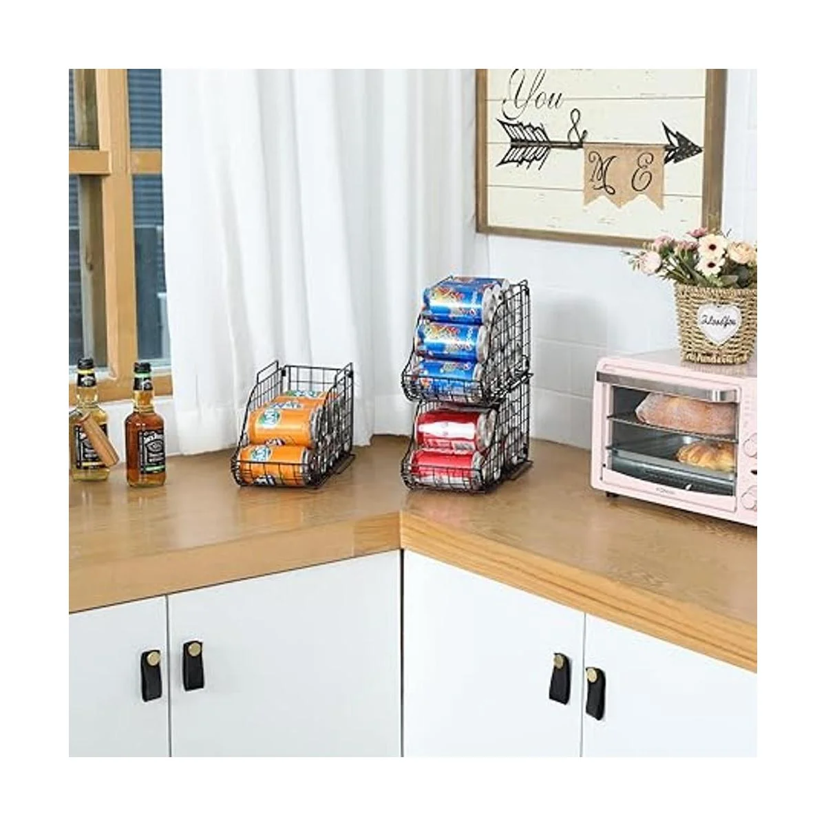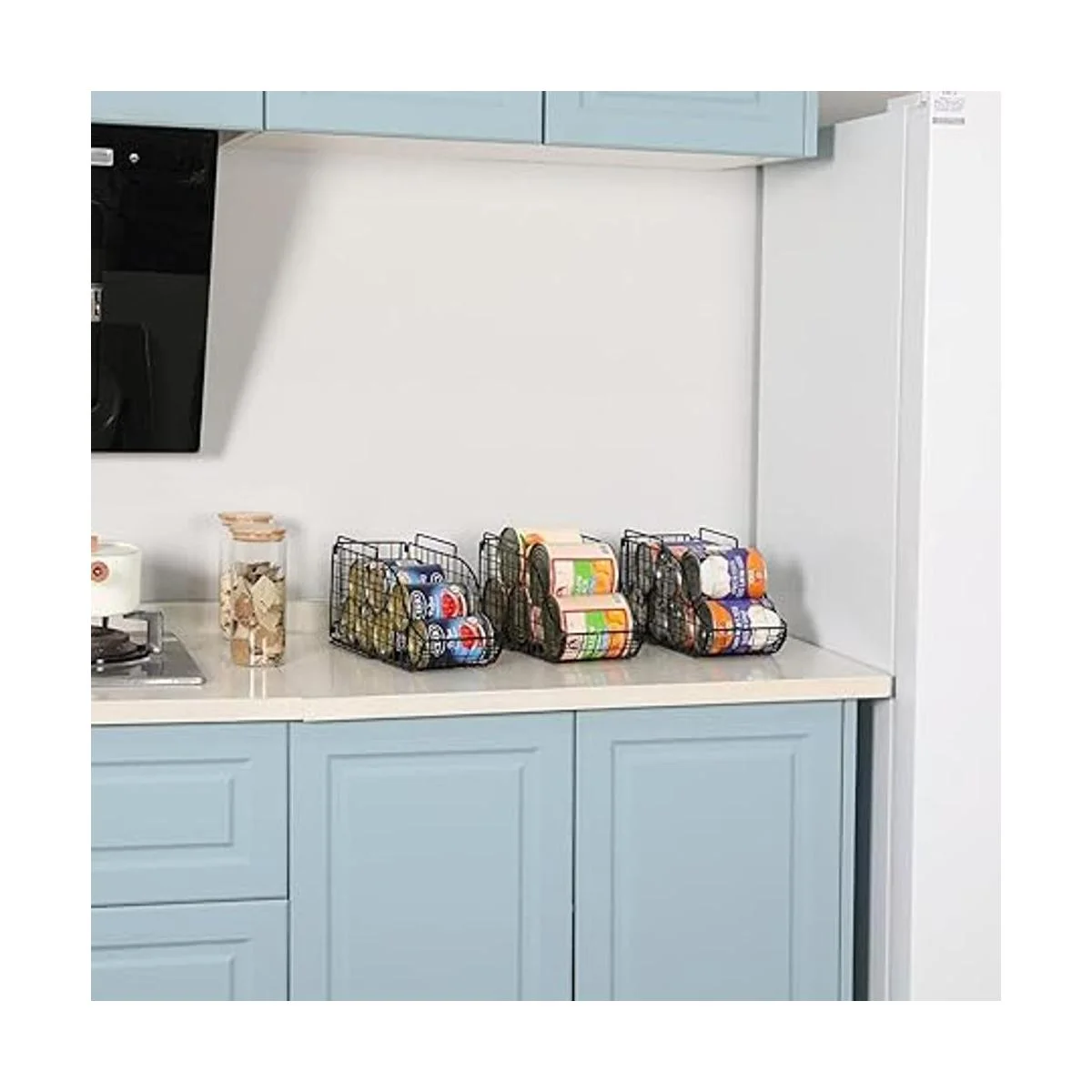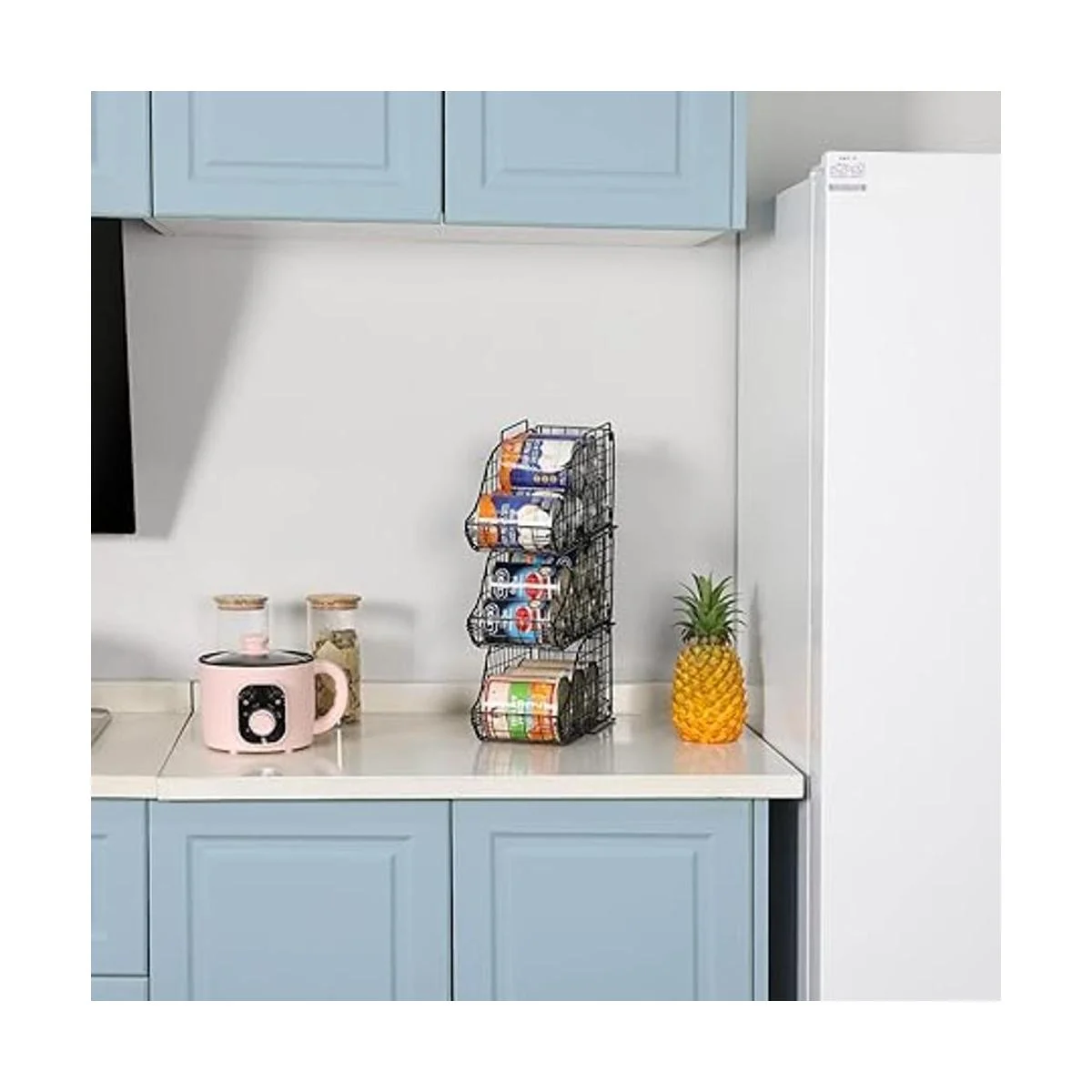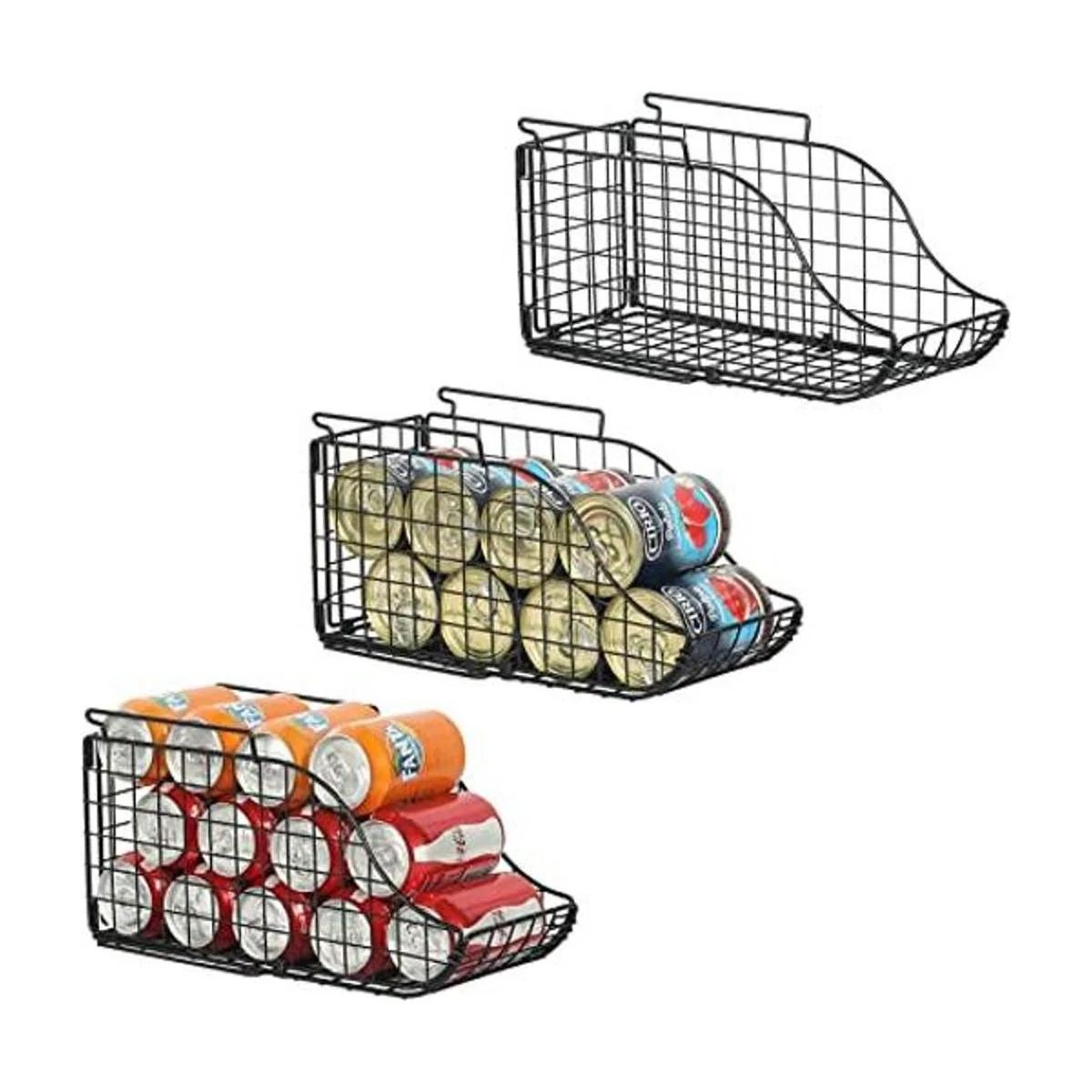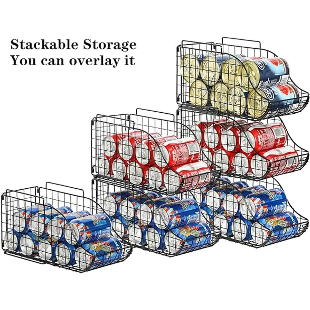 Diseño apilable: este contenedor dispensador de latas tiene el diseño apilable. Se puede utilizar en tu encimera de cocina, mesa, armario. Puedes superponer 2 o 3 cestas juntas o utilizar cada cesta sola. Se puede utilizar para almacenar tu lata de sopa, lata de comida para mascotas y otros alimentos enlatados. También se puede utilizar para organizar tu suciedad y refrescos en tu cocina.