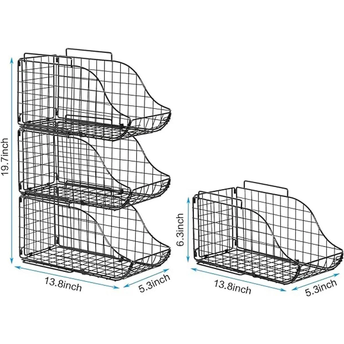 Ten en cuenta que 1 juego de horneado: 13.8 pulgadas de largo x 5.3 pulgadas de ancho x 6.3 pulgadas de alto. 3 cestas apilables juntas: 13.8 pulgadas de largo x 5.3 pulgadas de ancho x 19.7 pulgadas de alto. Mide el lugar en el que deseas poner la cesta para ver si es adecuada. Si tienes alguna pregunta sobre el producto, no dudes en ponerte en contacto con nosotros.