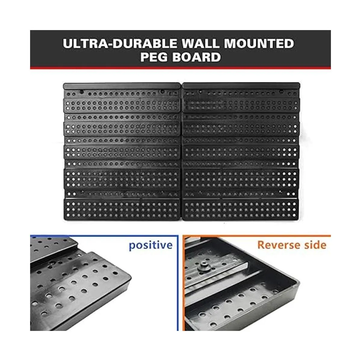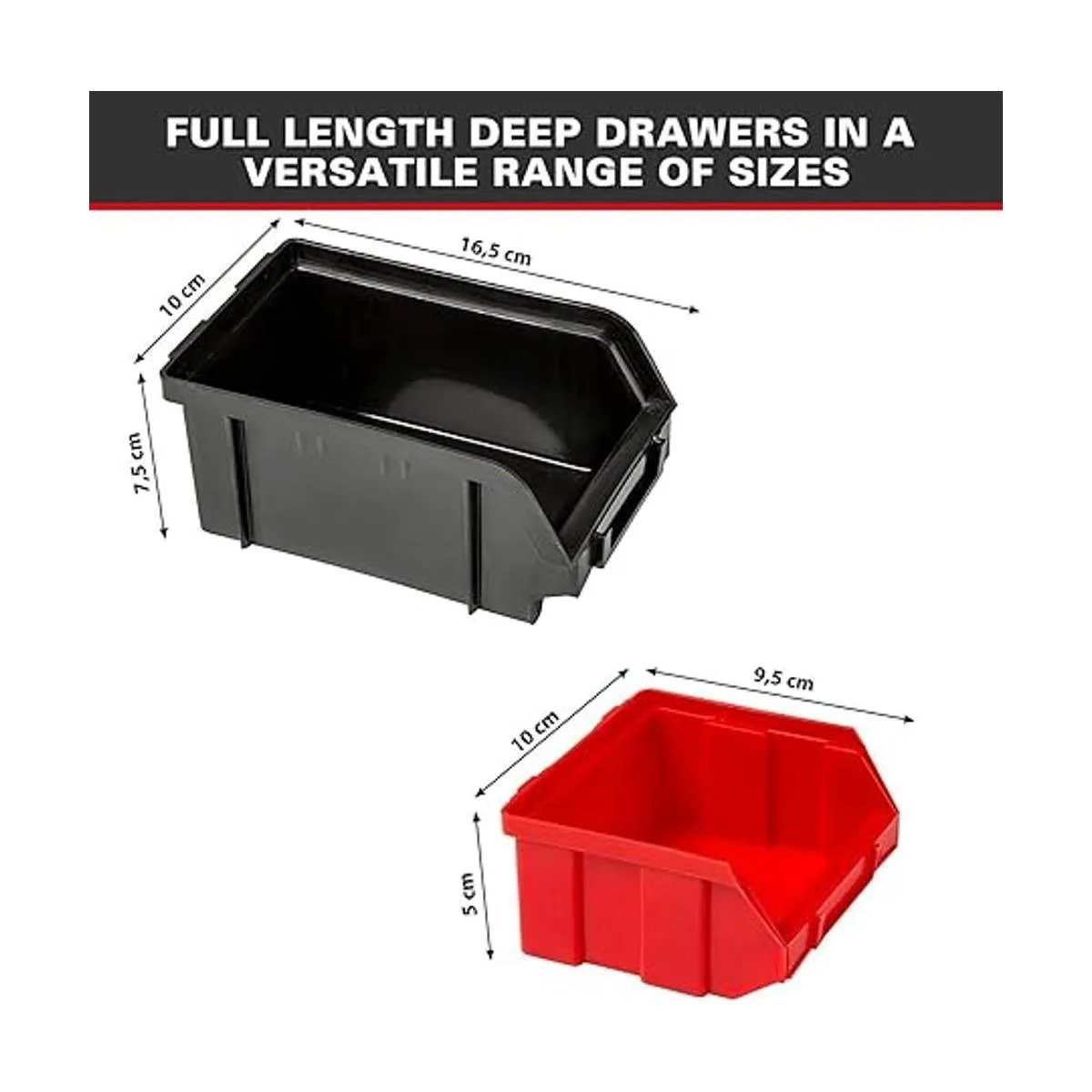 : Dimensiones totales: 25 x 14.9 x 7 pulgadas, tablero de panel negro: 25 x 14.9 pulgadas, 18 contenedores rojos: 3.8 x 3.6 x 1.9 pulgadas, 12 contenedores negros: 3.9 x 6 x 2.7 pulgadas. Imprescindible para tu hogar, talleres, garaje, escuelas, etc