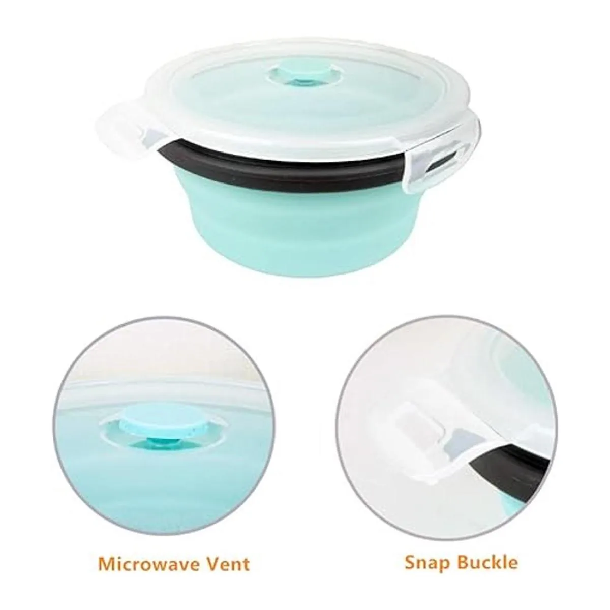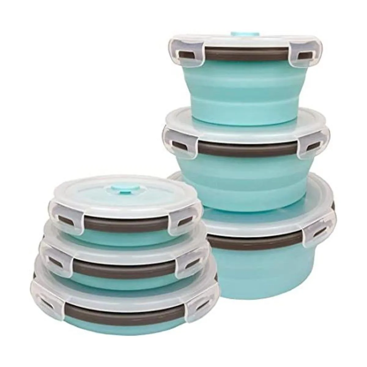 Contenedores desplegables de silicona con tapas para alimentos, libres de BPA, aptos para microondas y congelador
