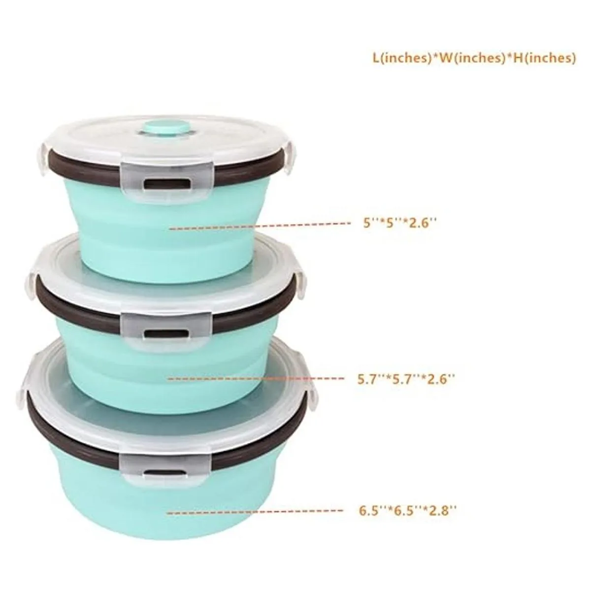 Mantén la comida fresca: juego de 3 recipientes de silicona plegables surtidos. Tamaño: 11.8 fl oz: 5 pulgadas x 5 pulgadas x 2.6 pulgadas; 16.9 fl oz: 5.7 pulgadas x 5.7 pulgadas x 2.6 pulgadas; 27.1 fl oz: 6.5 pulgadas x 6.5 pulgadas x 2.8 pulgadas. Juego de cuencos de camping de silicona perfecto para fiambreras de niños, sobras, para sacar o como contenedor de preparación de comida. Cada recipiente es ideal para mantener alimentos secos o húmedos como cereales, frutas, verduras, alimentos para bebés se mantienen frescos.