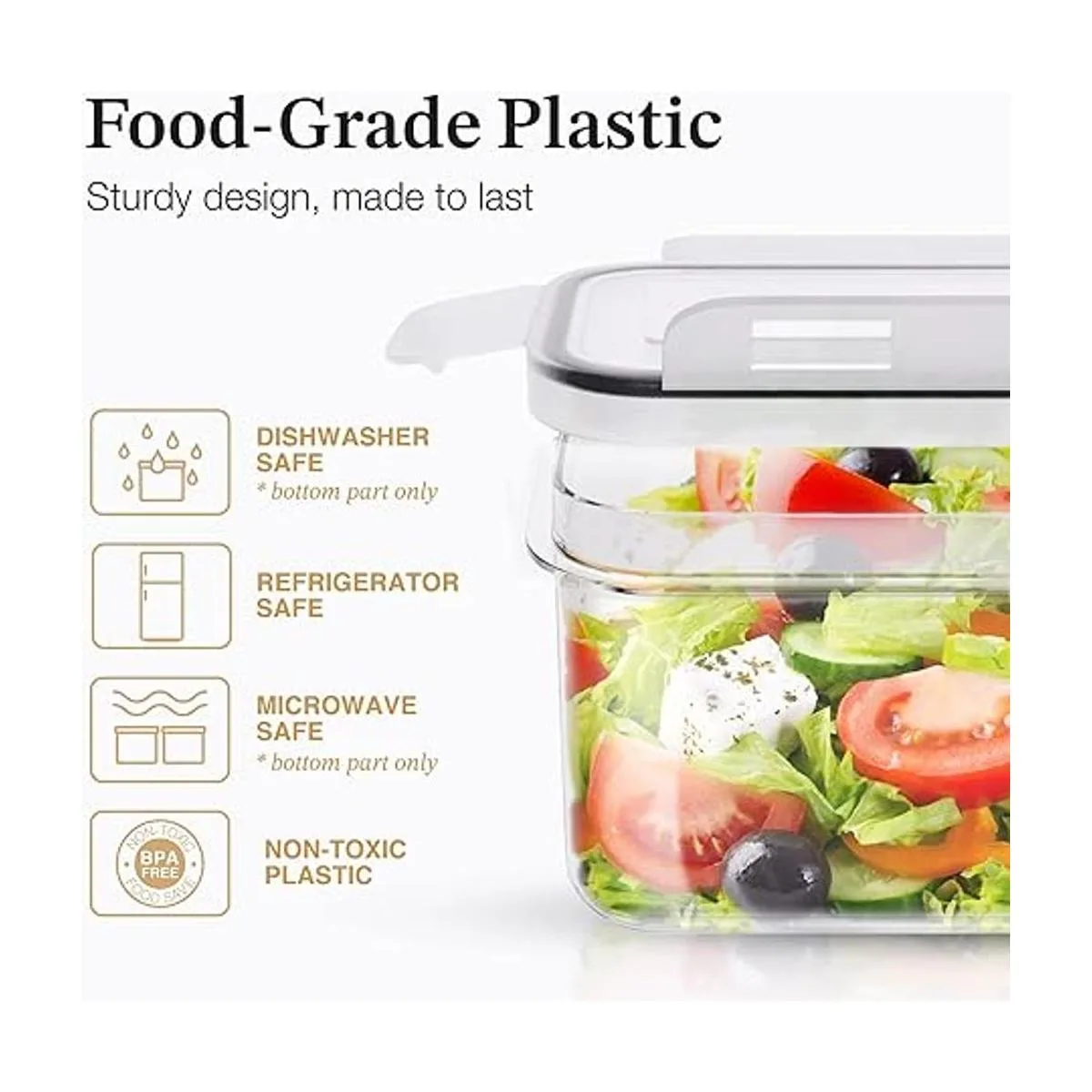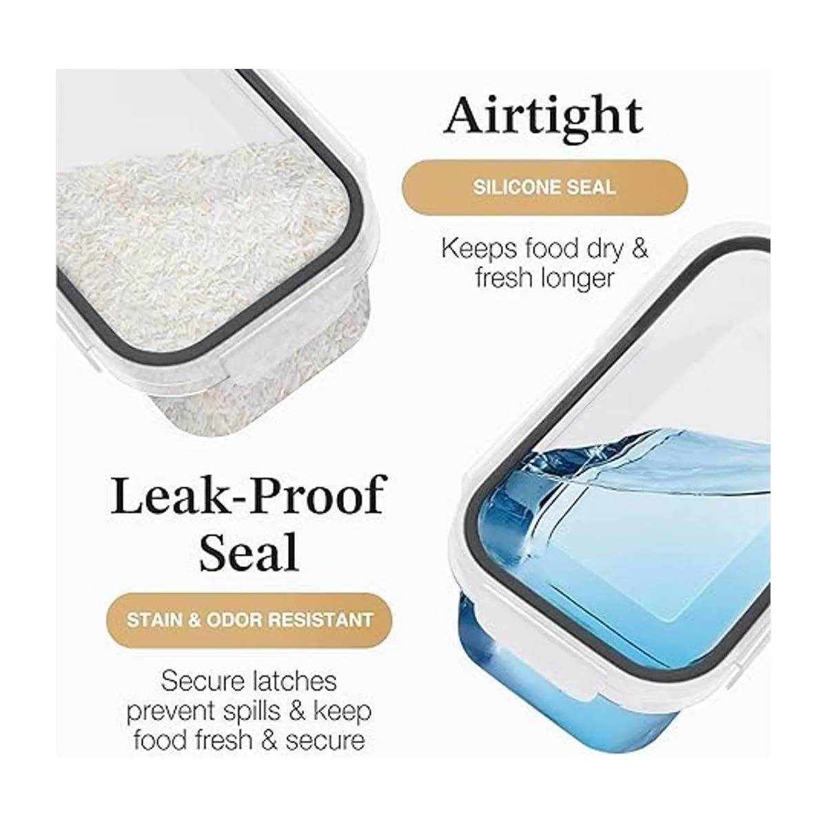 Diseño mejorado: el sistema de bloqueo de 4 bisagras de estos recipientes de almacenamiento de alimentos con tapas a presión forma un sello hermético entre el recipiente y la tapa para garantizar que no se derrame