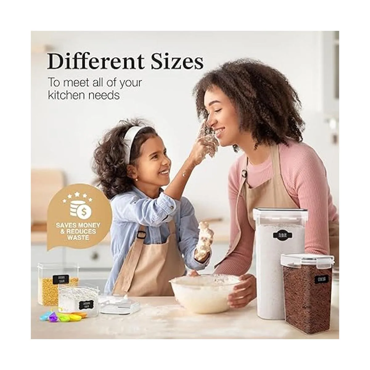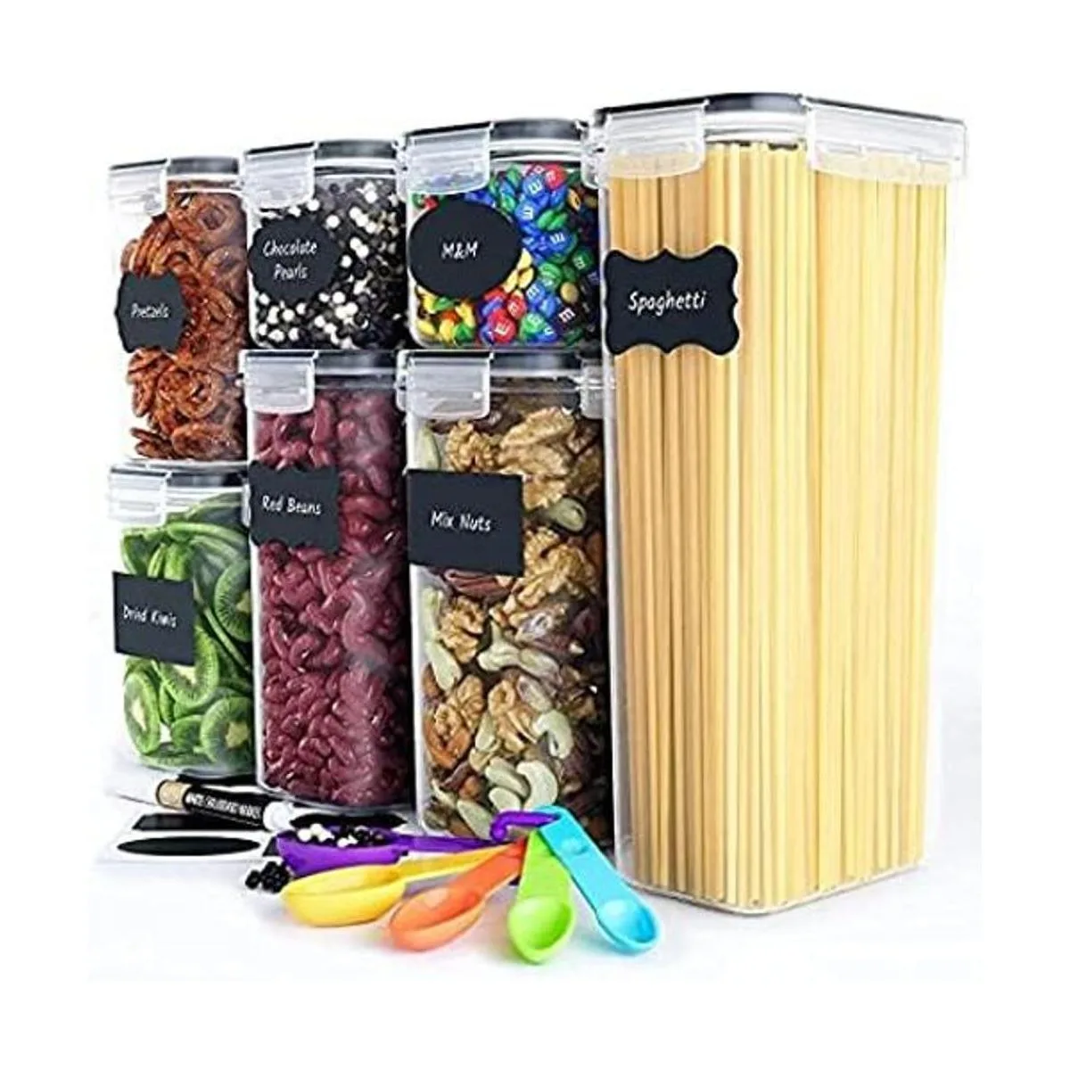 Contenedores herméticos de almacenamiento de alimentos para organización de cocina, 7 unidades, recipientes de plástico para alimentos con tapas, etiquetas, marcadores y cucharas para organización y almacenamiento de despensa, recipientes de cereales, harina y azúcar