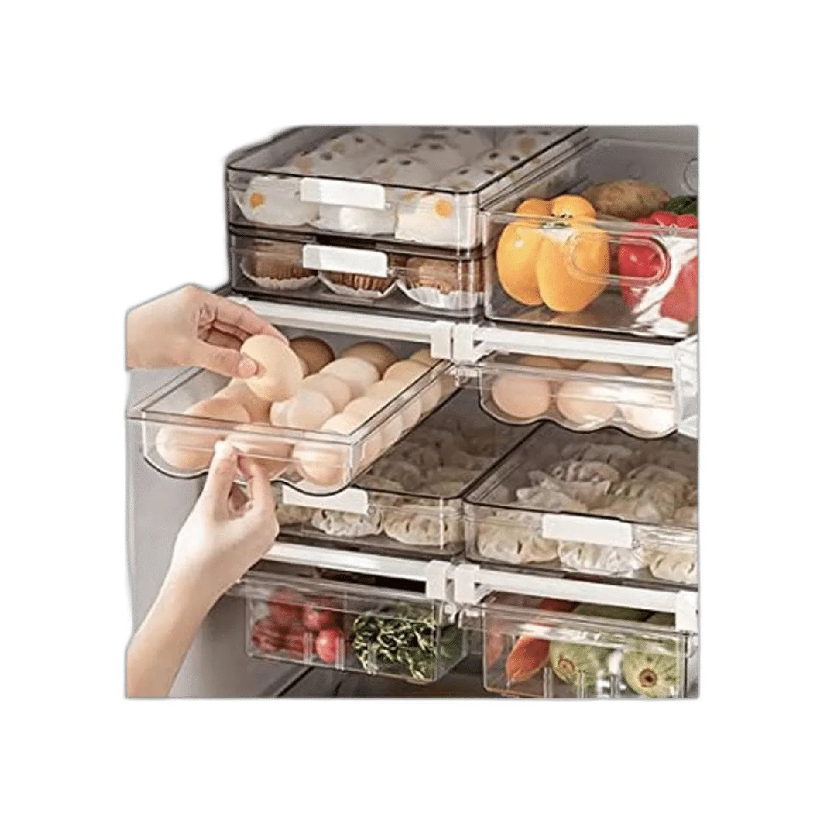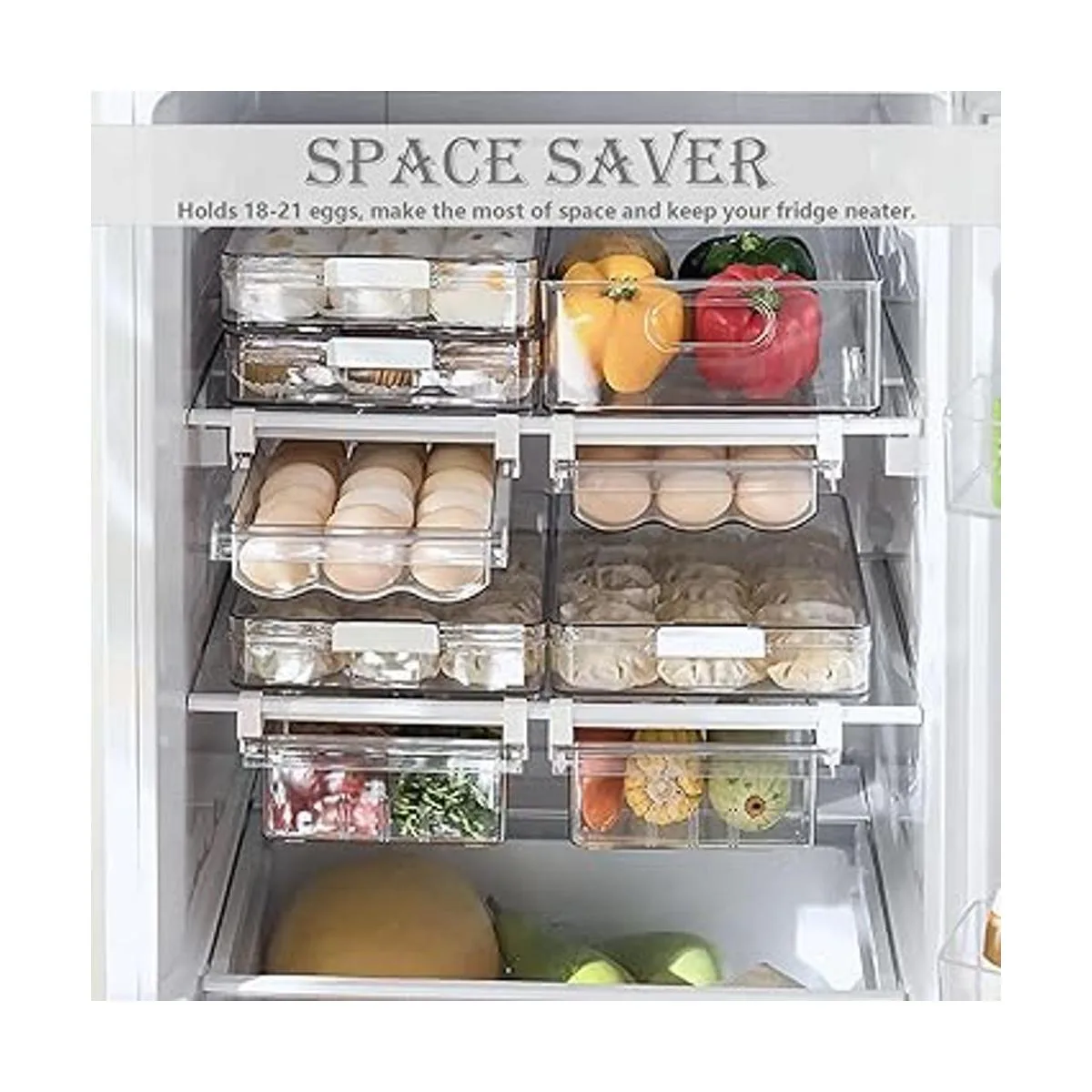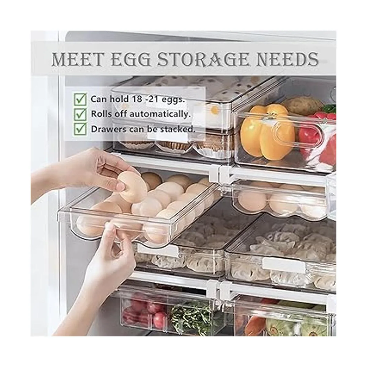 Contenedores organizadores para refrigerador, bandeja de gran capacidad para huevos, cajón de plástico transparente para huevos, caja de organización y almacenamiento para refrigerador, gabinete de cocina, despensa