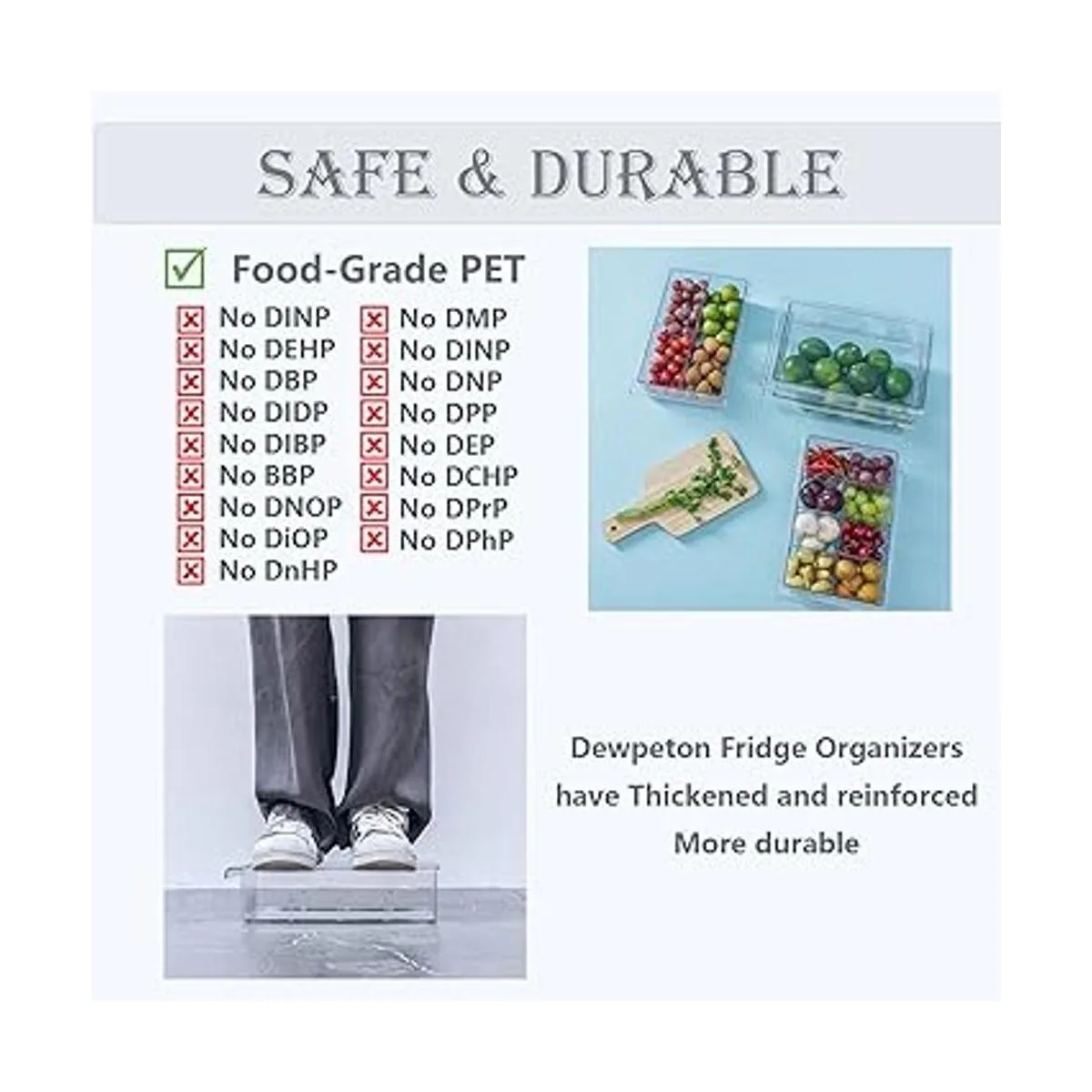 Seguro para alimentos y duradero: el organizador de congelador y despensa Dewpeton está hecho de PET apto para alimentos. Diseño grueso y reforzado, lo que lo hace más duradero. Fácil de limpiar a mano con agua jabonosa suave.