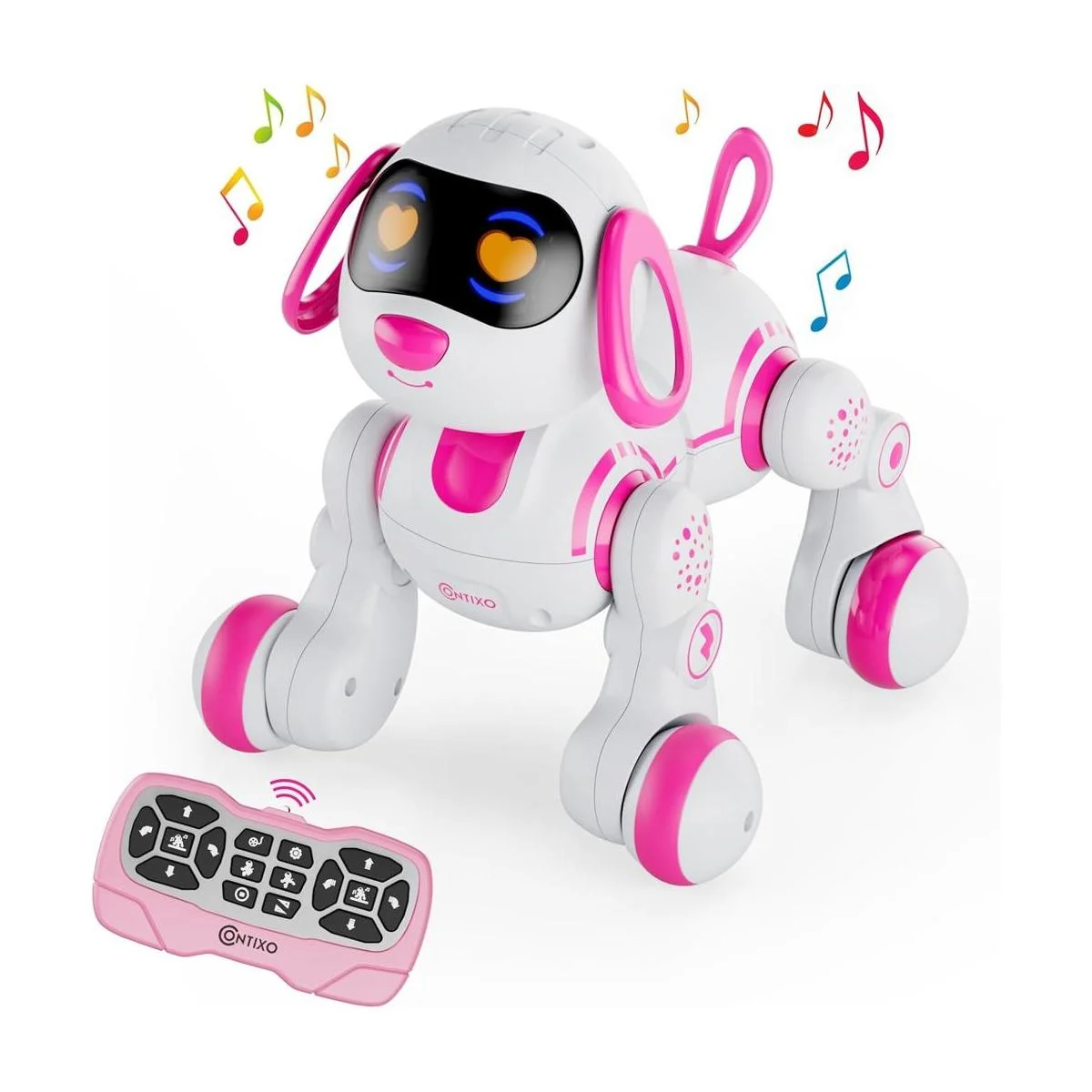 Contixo R3 Robot Dog, robot de juguete para mascotas para niños, control remoto, baile interactivo, comandos de voz, perro de juguete RC para niños y niñas rosa