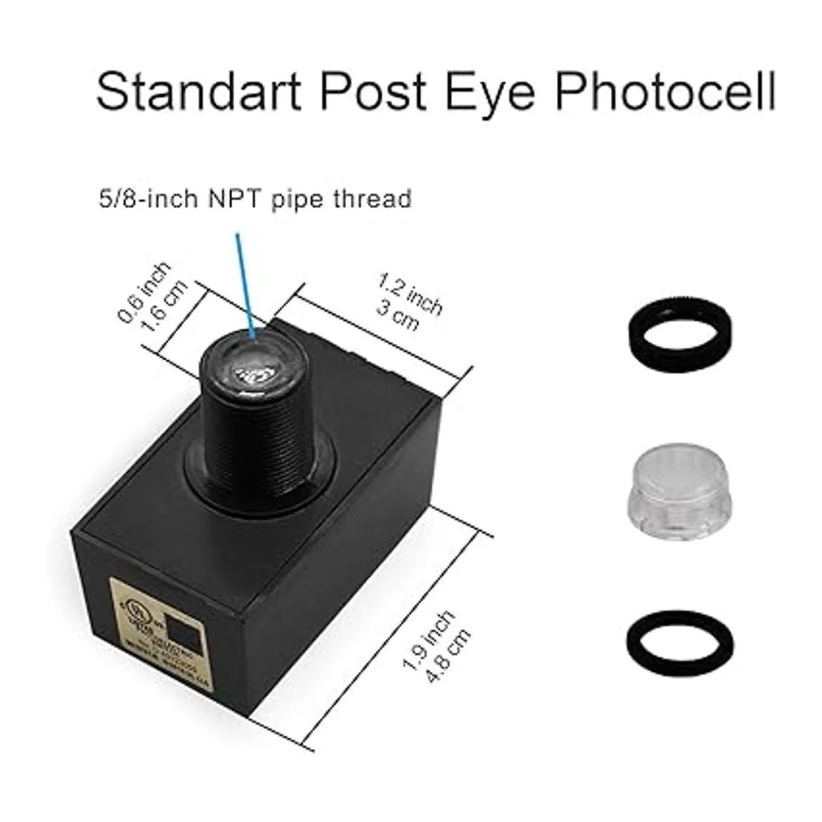 Versátil: 120 V 60 Hz, tungsteno de 600 W, balasto de 600 VA; incandescente, fluorescente, LED, halógeno, vapor de mercurio, sodio de alta presión y compatible con CFL. También el sensor de ojo fotográfico para luces exteriores tiene una función de retardo para evitar cargas que se apagan temporalmente debido a faros de coche, rayos u otras fuentes de luz temporales.