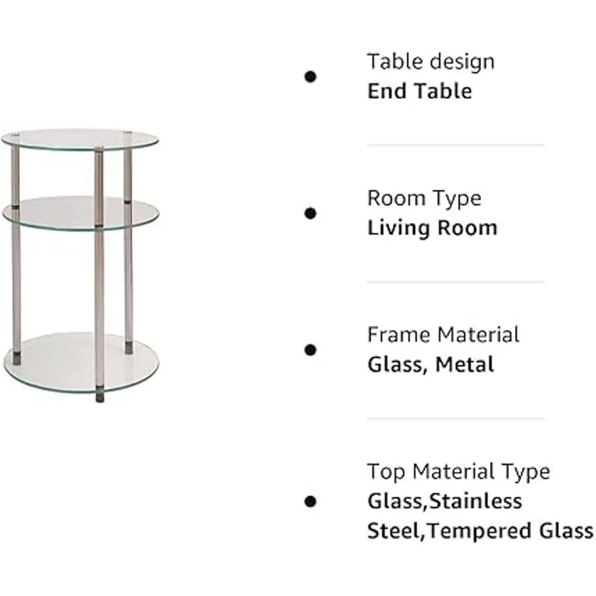 Convenience Concepts Designs2Go Mesa redonda de vidrio clásico de 3 niveles, vidrio