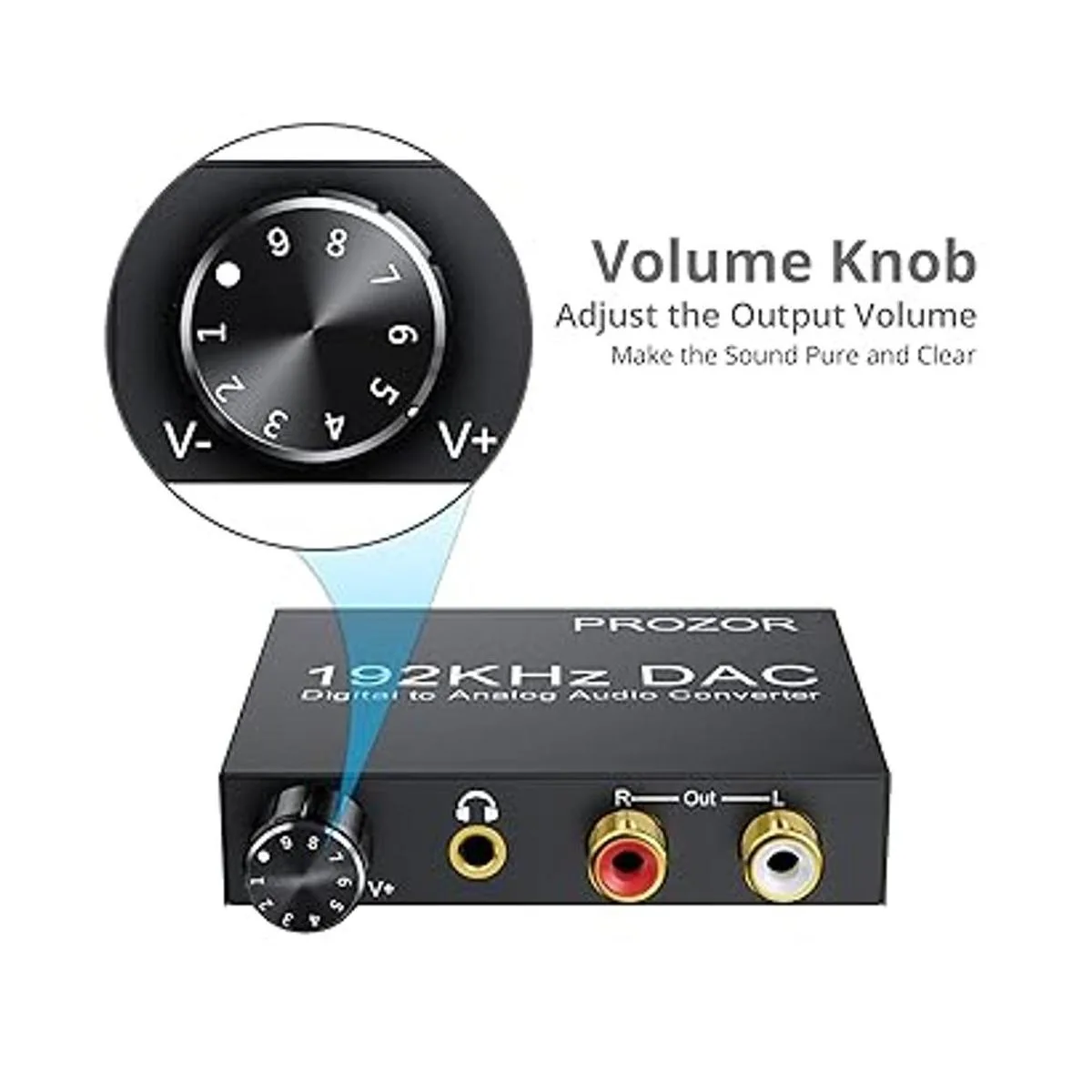 192kHz DAC converter prozor digital to analog Audio converter, converts coaxial or Toslink digital PCM Audio signals to analog L/R RCA and 3. 5mm jack Audio simultaneously input and output cannot be reversed