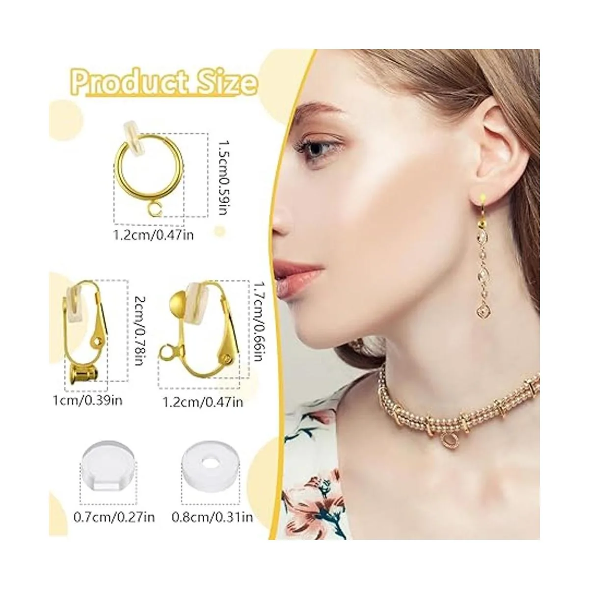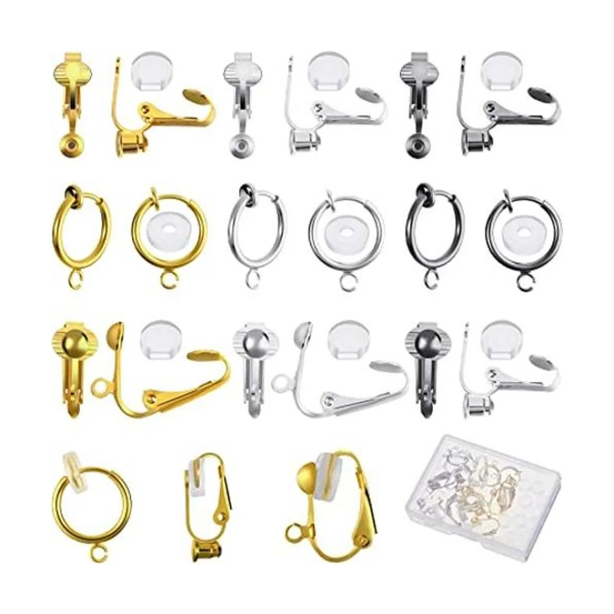 3 colores y estilos: estos clips de aretes tienen 3 colores vibrantes y clásicos, incluyendo colores dorado, plata y acero; cada convertidor de aretes con clip tiene un tapón de oreja y no presiona tus orejas, fácil de llevar o llevar, diferentes estilos para que elijas