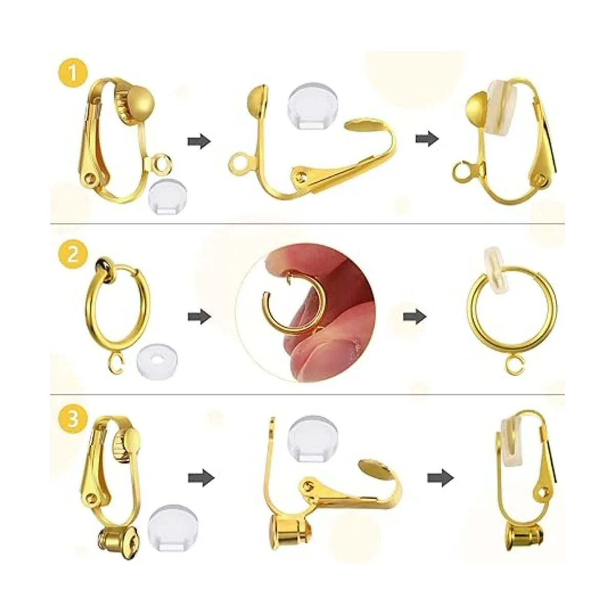 Convertidor de aretes con clip de 18 piezas con almohadillas de silicona para pendientes, convertidor de aretes con clip de 3 colores, con lazo fácil de abrir para no perforar orejas, aretes de bricolaje para hacer joyas