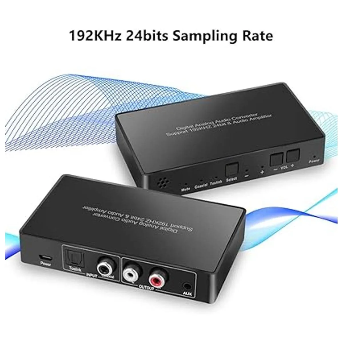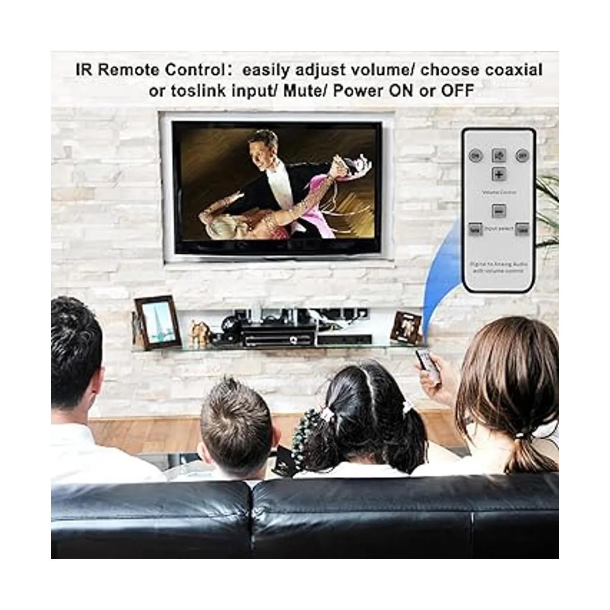 Convertidor de audio digital a analógico con mando a distancia, 192 KHz24 bits Toslink coaxial digital a audio analógico LR RCA de 0.138 in con cable Toslink y cable coaxial