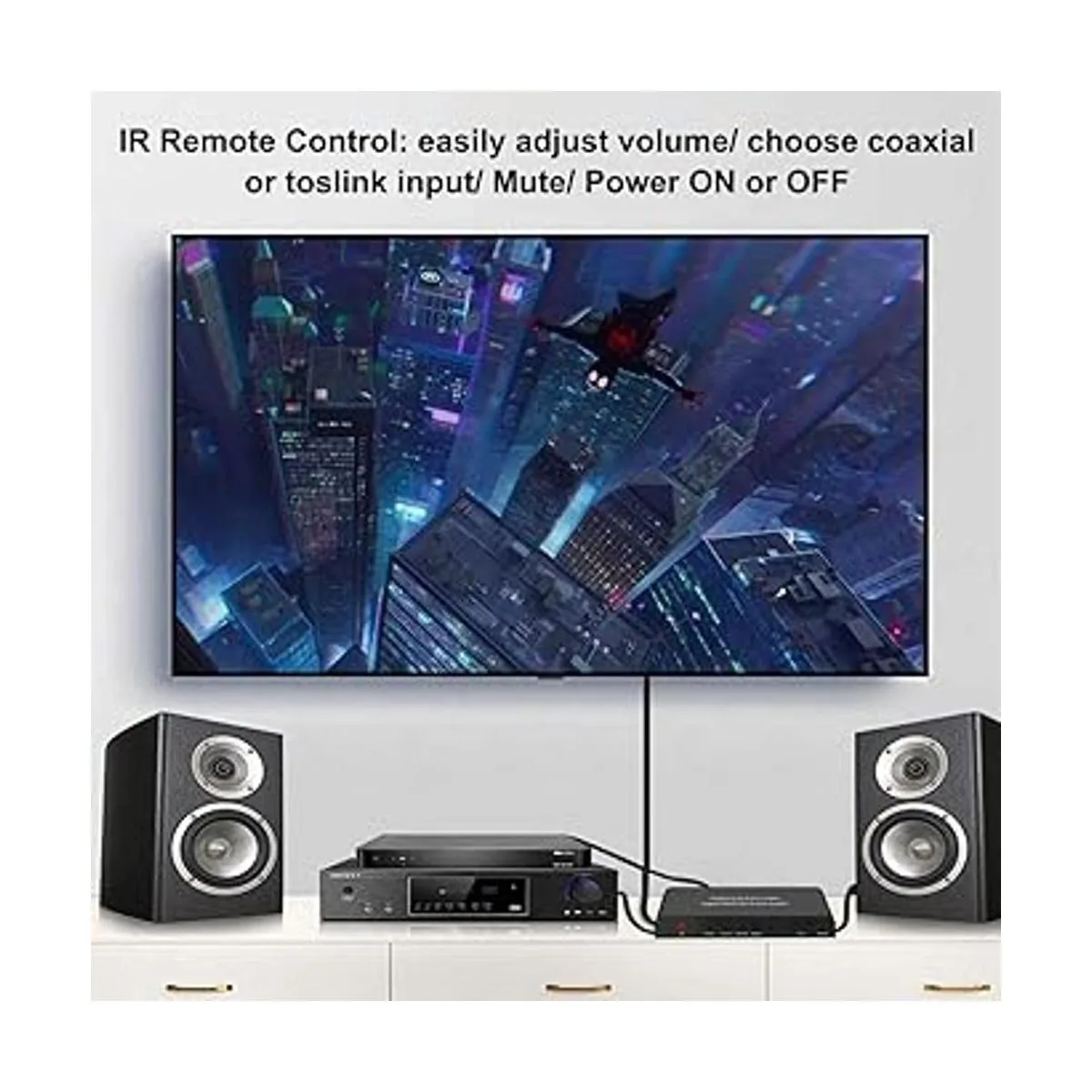 Convertidor de audio digital a analógico de 192 KHz DAC con control remoto ajustable de volumen de 192 KHz24 bits coaxial digital Toslink a analógico LR RCA audio de 0.138 in para PS4, Xbox HDTV, Bluray DVD, auriculares AppleTV.
