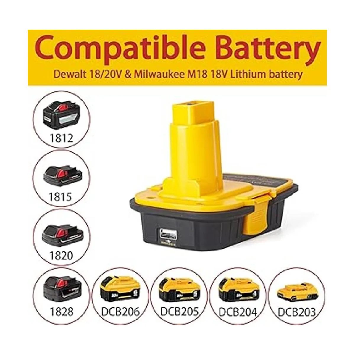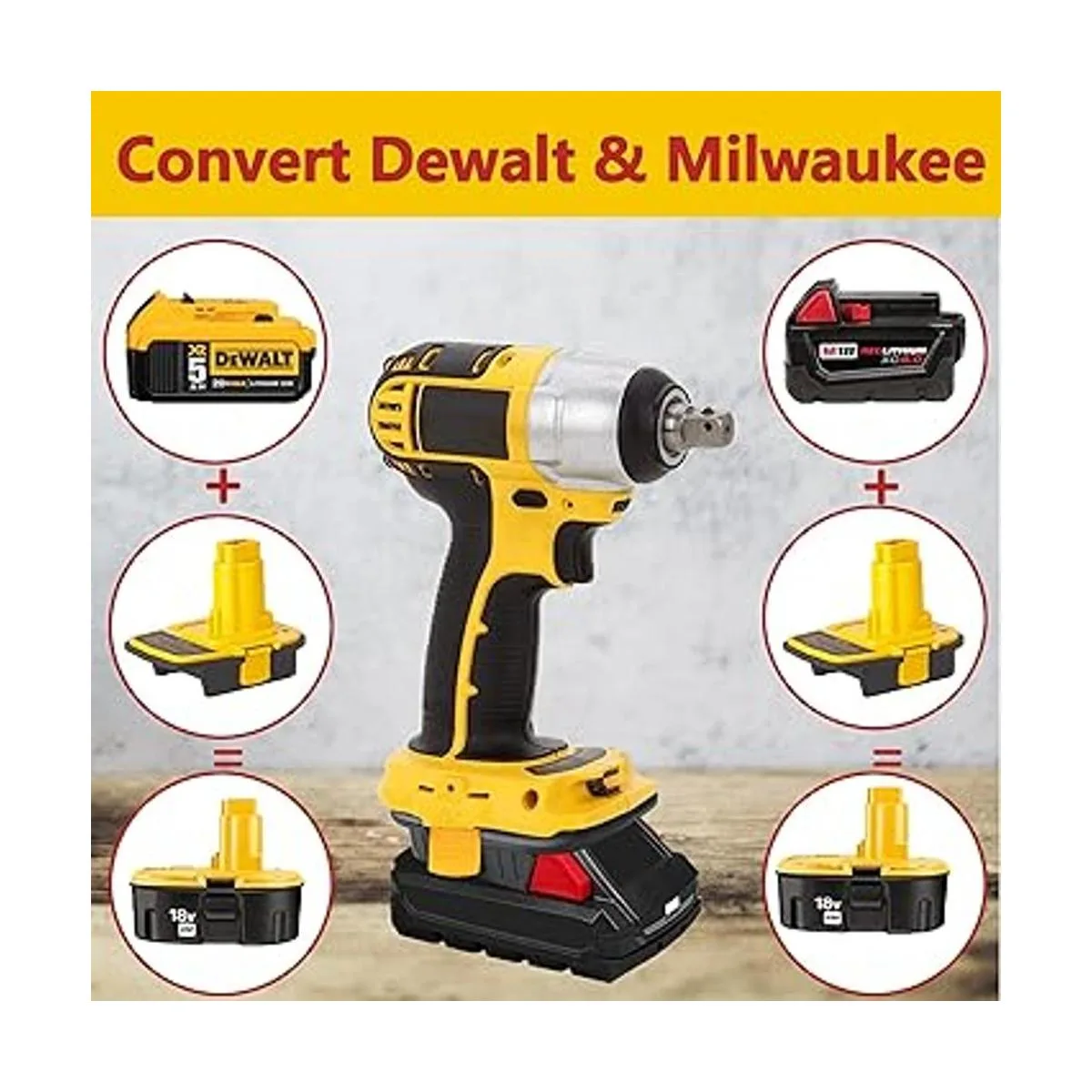 Compatibilidad: compatible con baterías de litio DeWalt de 18 V a 20 V DCB203 DCB204 DCB205 DCB206 DCB606 y compatible con baterías compactas de litio Milwaukee M18 de 18 V. Adaptador de interfaz superior para herramientas eléctricas inalámbricas DEWALT 18V XPR NiCad y NiMh.