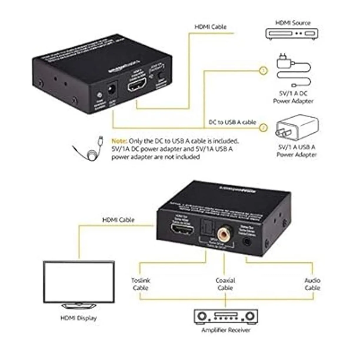 Convertidor extractor HDMI 4K a HDMI y audio RCA estéreo o Spdif compatible con Apple TV, Fire TV y reproductores de rayos azules