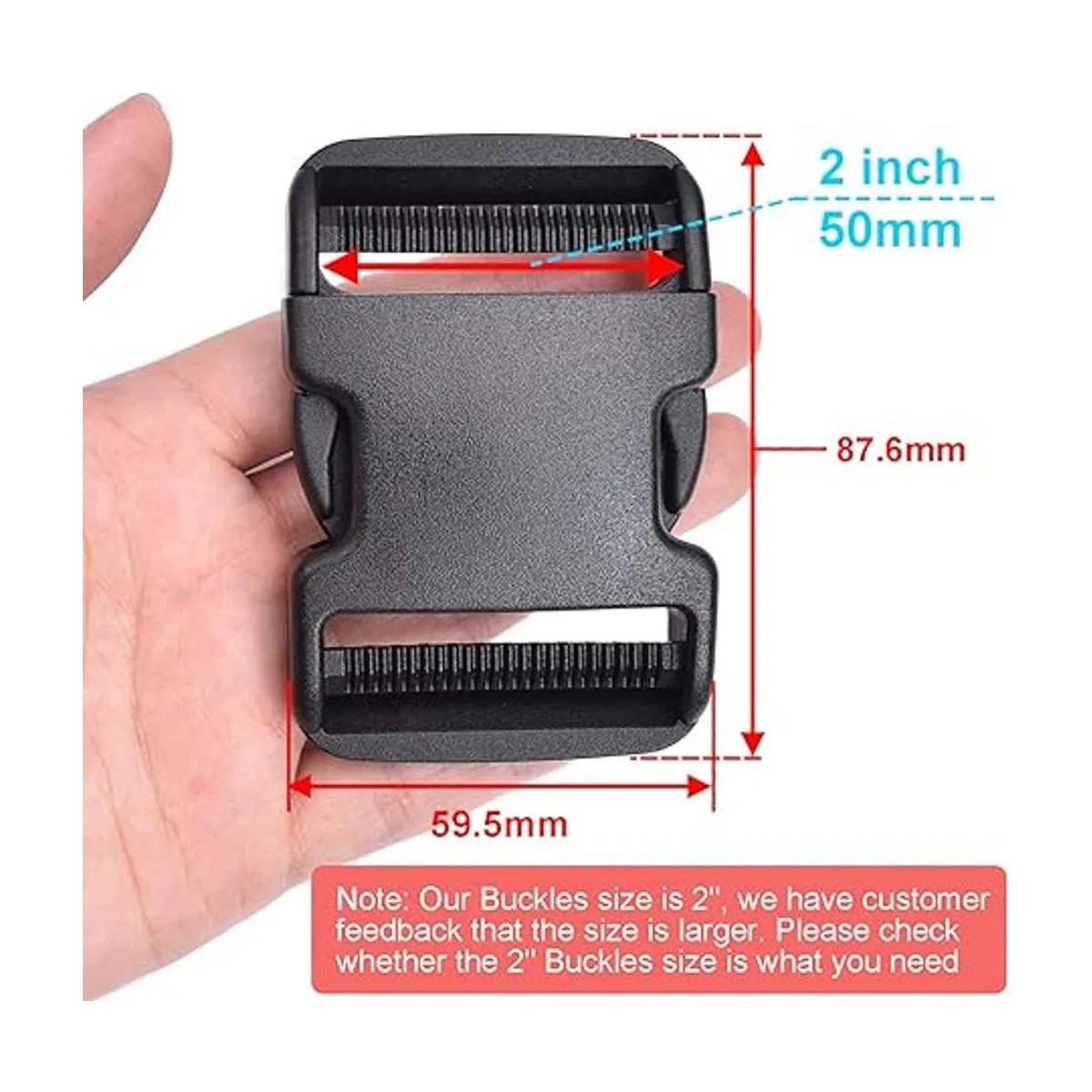 CooBigo Paquete de 5 clips de hebilla de plástico de liberación lateral rápida de 2 pulgadas, a presión militar, doble ajustable, sin costura, resistente para mochila, hebillas, repuesto de correas de nailon, correas de equipaje, cinturón de riñonera