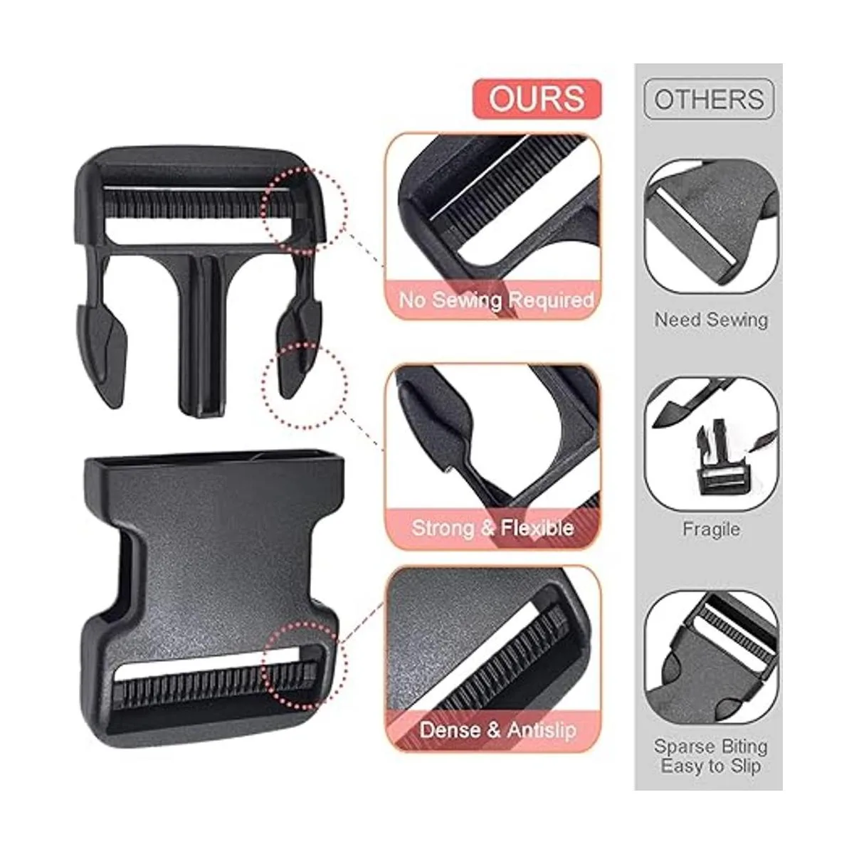 Fácil de usar: libera la hebilla y sujeta atada. Hebillas de liberación rápida perfectas para correas de nailon, buenas hebillas de bloqueo para fijación, hebillas de liberación lateral perfectas para ajustar la longitud de la correa de bolsas de mochila