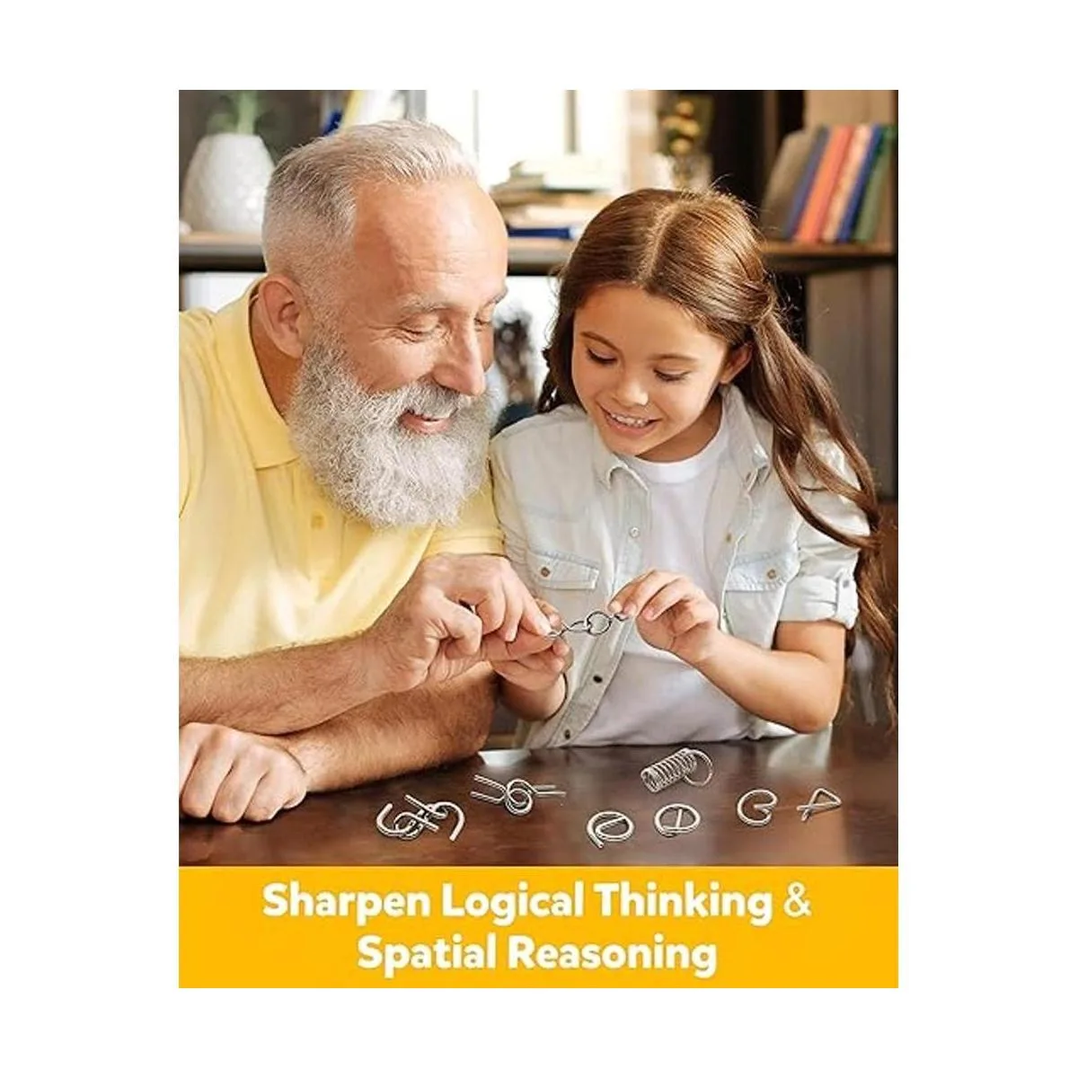 Juego de rompecabezas de alambre de metal adecuado para niños y adultos, especialmente aquellos a los que les gusta ser desafiados, pero no para niños menores de 6 años. Contiene piezas pequeñas, no poner en la boca.