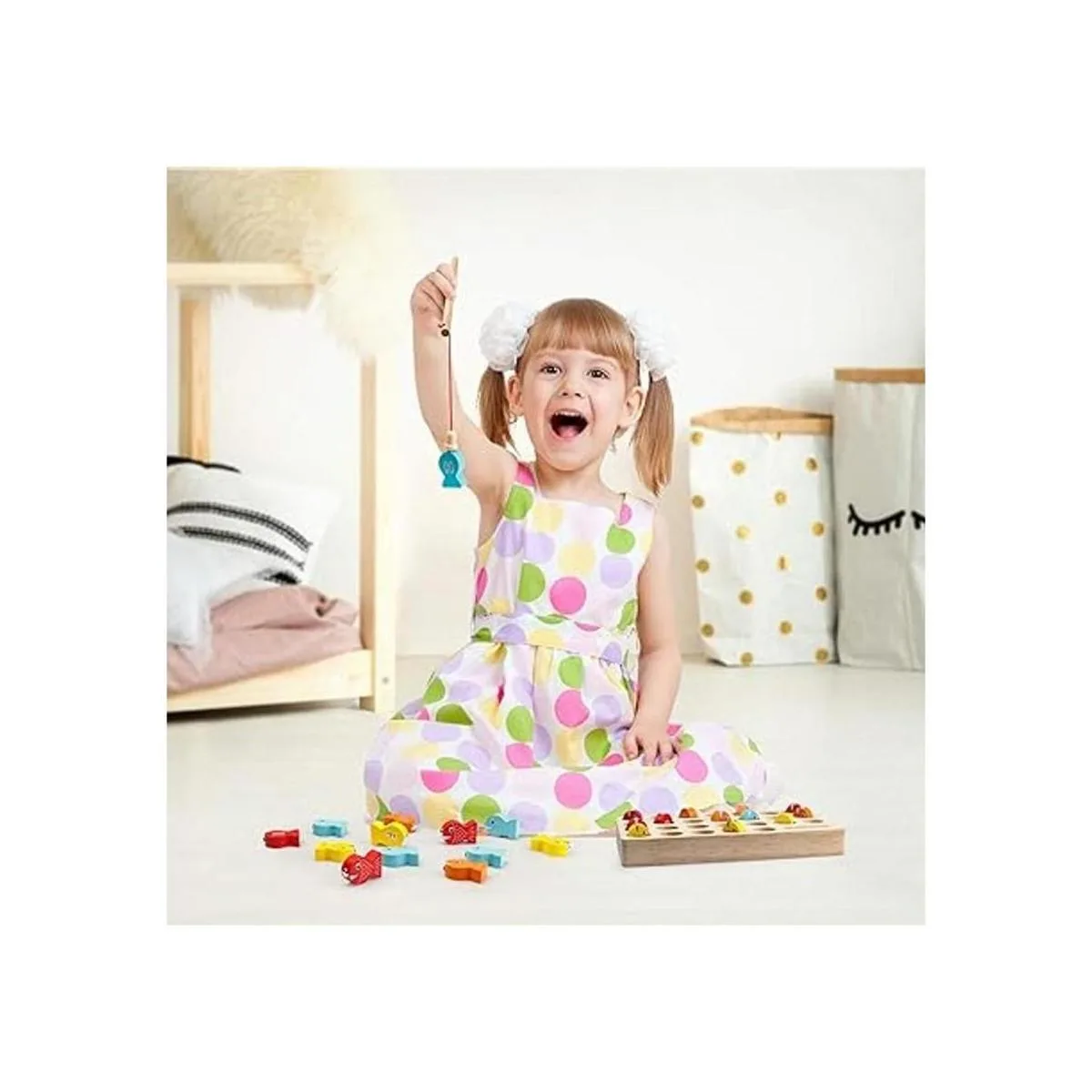 Cómo jugar: Encuentra los peces que coincidan con el color y la letra, utilizando la caña de pescar de madera, los imanes están unidos a la boca del pez que les permite recoger los peces. Hay dos postes para que los niños puedan tomar turnos capturando peces, competir con amigos para ver quién obtiene más, o simplemente crear sus propios desafíos únicos.