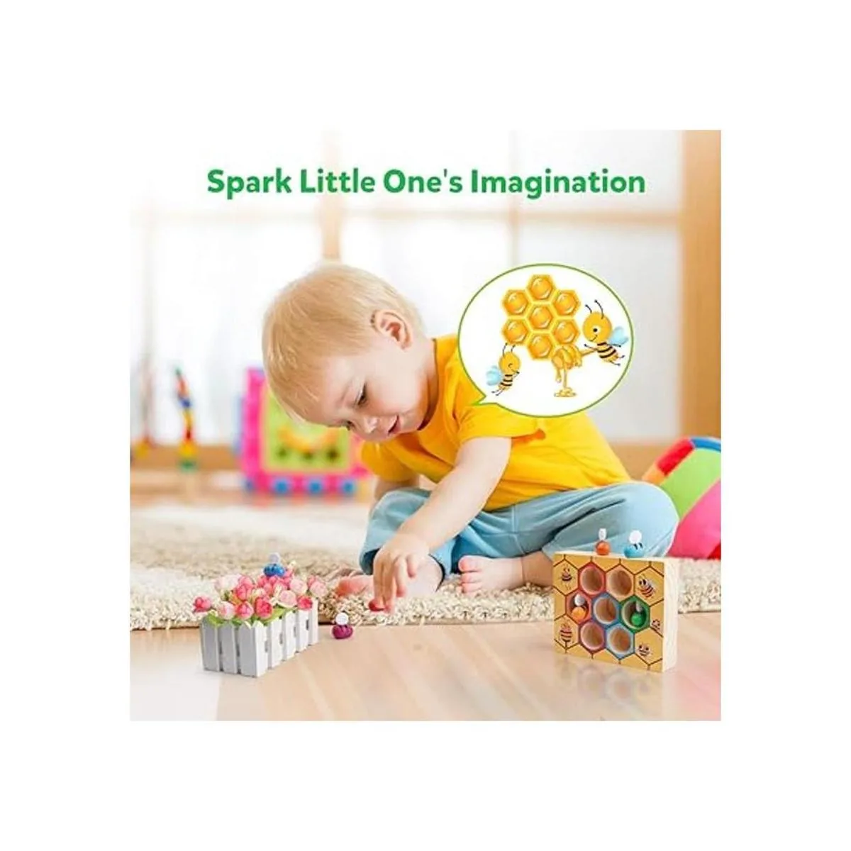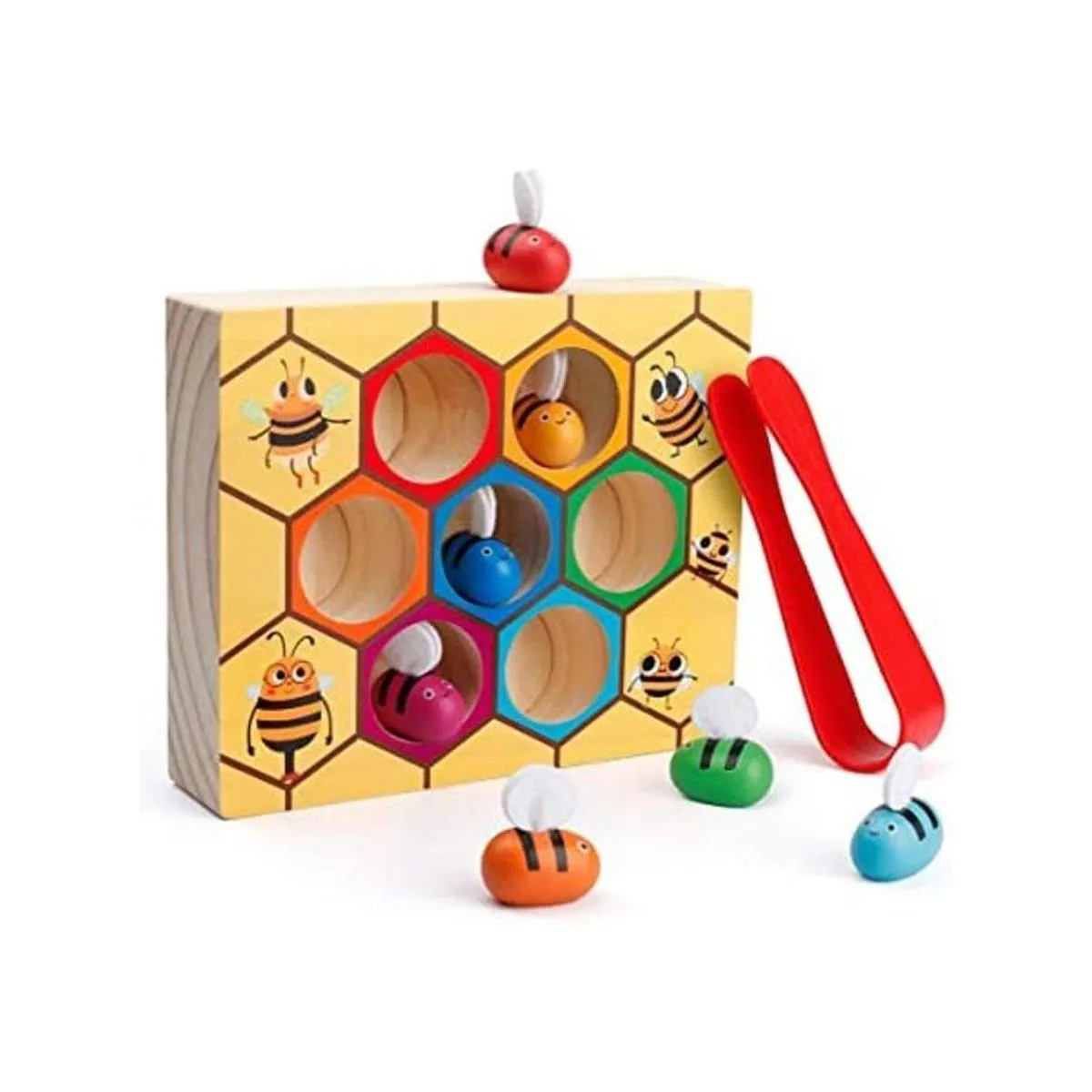 Coogam Juguete de habilidad motora fina, juego de abrazadera de abeja a colmena, rompecabezas de madera Montessori, juguete educativo para niños de 2 a 4 años