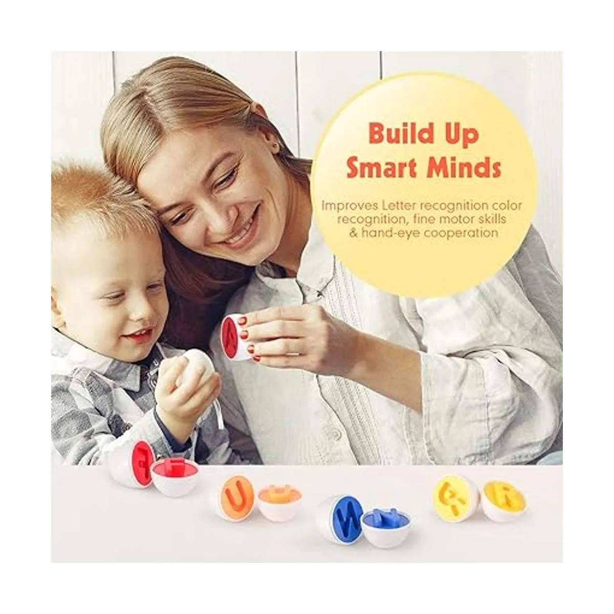Herramienta de aprendizaje multiusos: Los huevos que se emparejan con el alfabeto son ideales para enseñar colores y formas de forma natural, los niños pueden separarlos y combinarlos todos, nombrar el alfabeto, y decir los colores. Vienen en un recipiente, se almacenan fácilmente y ordenadamente. Gran manera de enseñar a tu hijo a limpiar Este es un gran juguete crece a más actividades, no uno que será desechado en un mes.