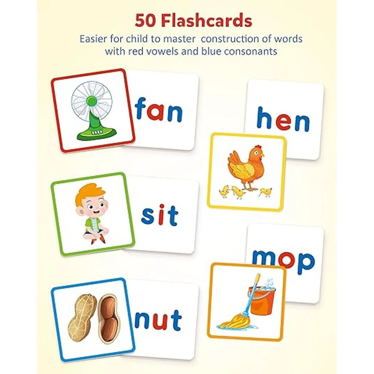 Ayuda educativa perfecta: mezclar sonidos y construir palabras rellenando letras en blanco es una gran manera de reforzar la fonética esencial necesaria para aprender a leer, lo que apoya el desarrollo del lenguaje de un niño. La bolsa portátil hace que sea más fácil de limpiar y mantiene todo junto, una ayuda perfecta para un lector de lucha o principiante, mamá de escuela en casa, profesora de aula o preescolar.