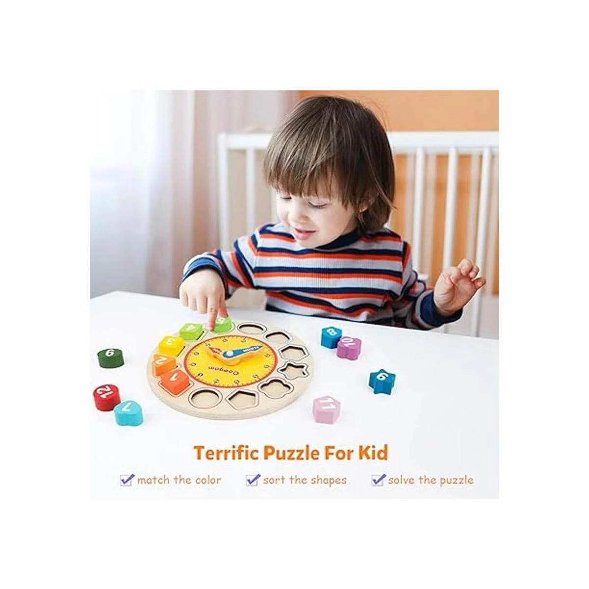 Regalo para niños: Colores brillantes, se siente sólido, las pequeñas piezas del rompecabezas tienen bonitas formas y son fáciles de manejar. La pintura no se despega después de su uso. Bonito reloj de madera para niños, para más posibilidades de aprendizaje.