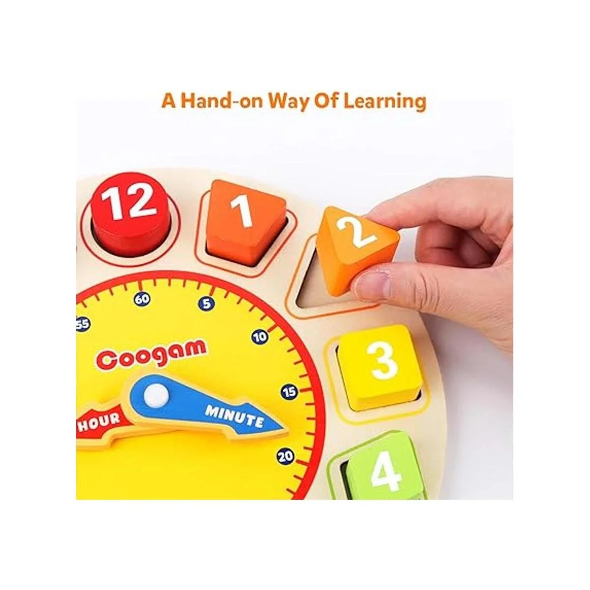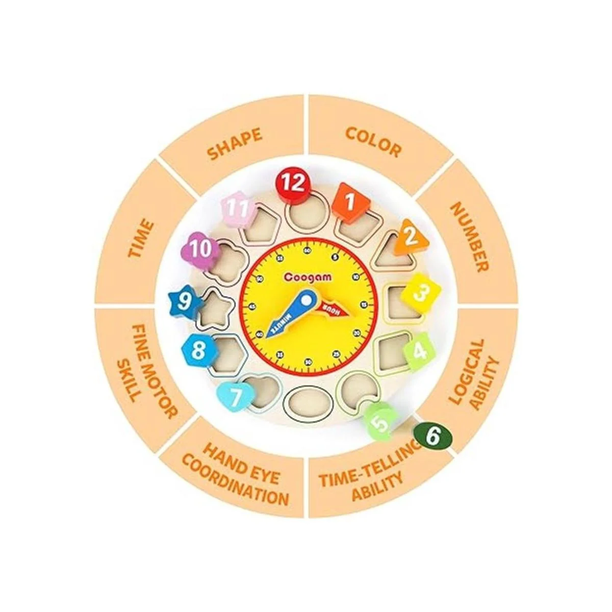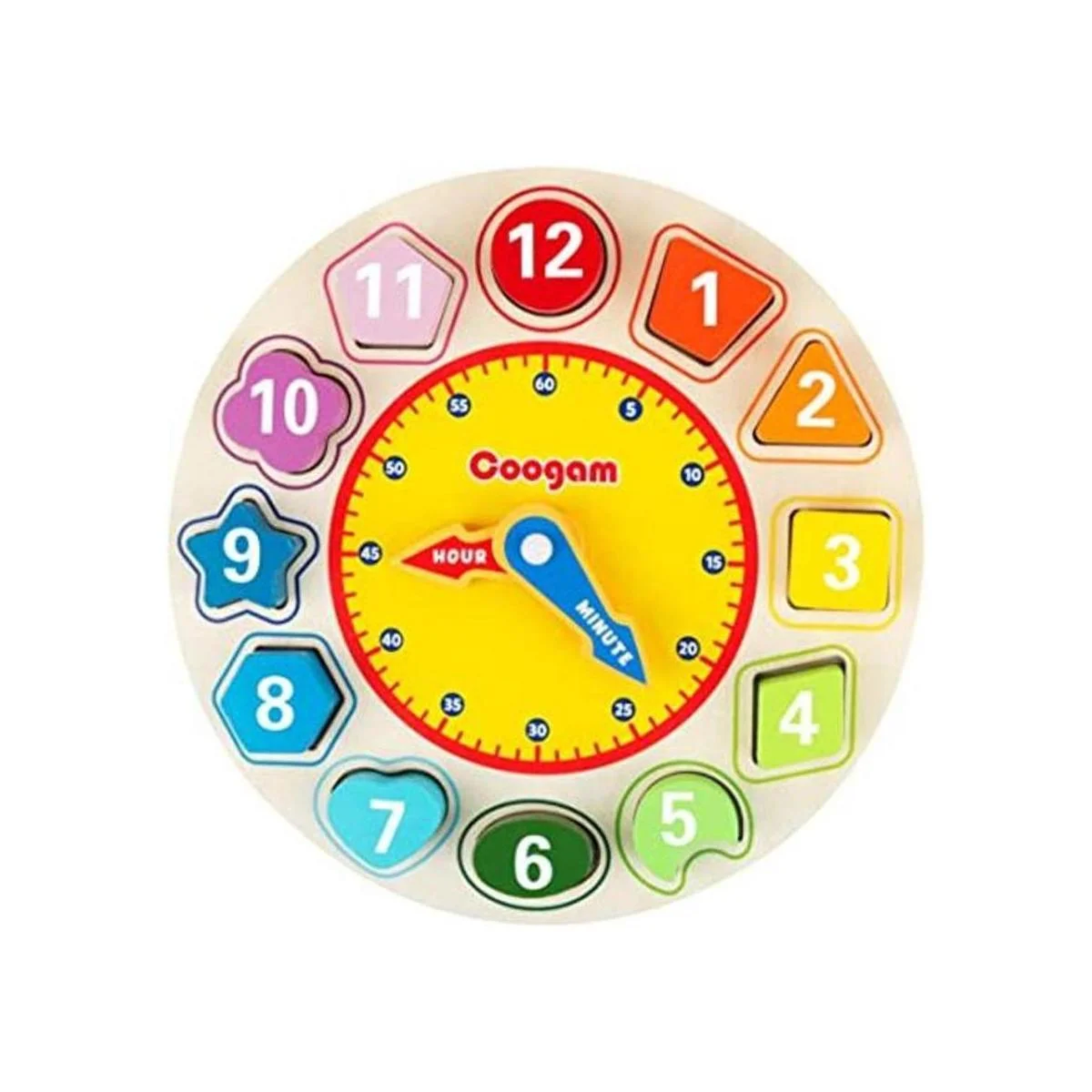 Coogam Reloj de madera con colores y formas, diseño de números, rompecabezas, juguete montessori, juguete educativo para niños de 1, 2 y 3 años de edad